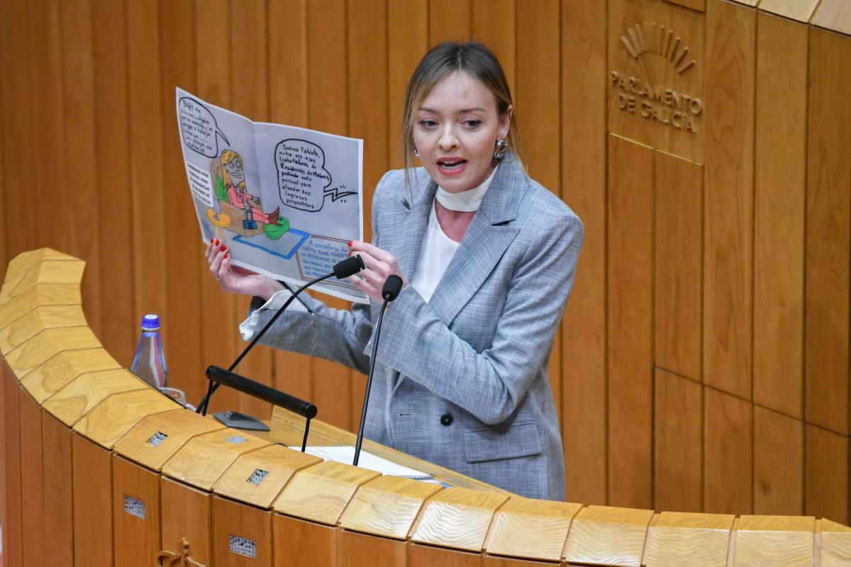 A conselleira de Política Social e Igualdade, Fabiola García, compareceu hoxe a petición propia no Parlamento