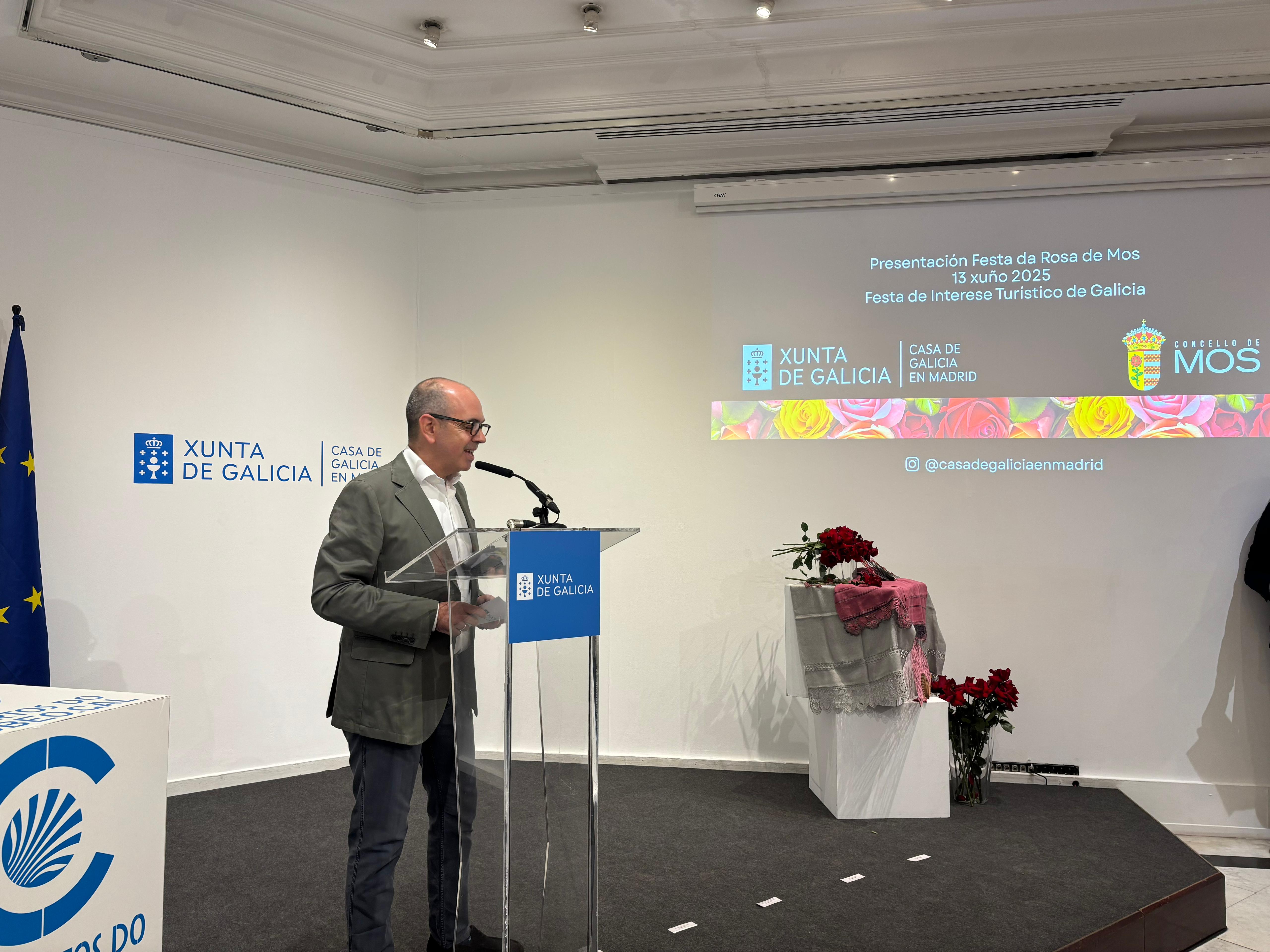Durante a súa intervención, o director da Casa de Galicia deu a benvida aos asistentes lembrando que “hoxe presentamos unha festa global, nacida en 1973 para poñer en valor a Rosa dos Quirós, a rosa duns marqueses que podemos ver no escudo municipal”. Subliñou ademais que “a partir da extraordinaria beleza dunha rosa, Mos desenvolveu un programa festivo para todos os sentidos que inclúe a festa da empanada e o pan de millo”.