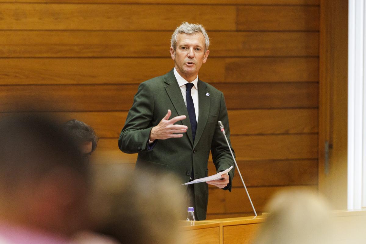 O titular do Goberno galego, Alfonso Rueda, respondeu hoxe no Pleno do Parlamento de Galicia as preguntas dos grupos parlamentarios.