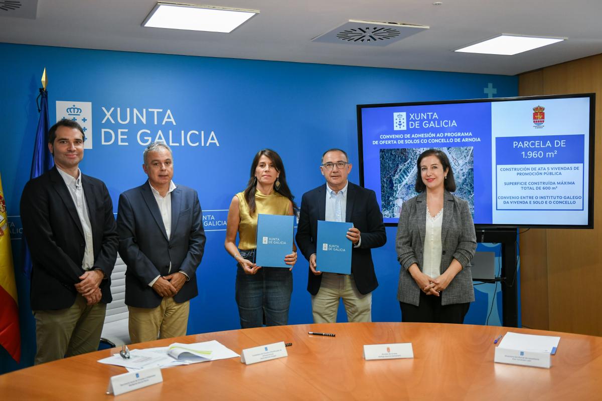 O convenio con A Arnoia é o segundo que se asina, tras o rubricado co Concello das Pontes a finais de maio deste ano. A Xunta estima que no último trimestre deste ano poderán saír a concurso as parcelas de titularidade municipal no marco deste primeiro acordo, para que cooperativistas e promotores constrúan vivenda protexida na localidade.