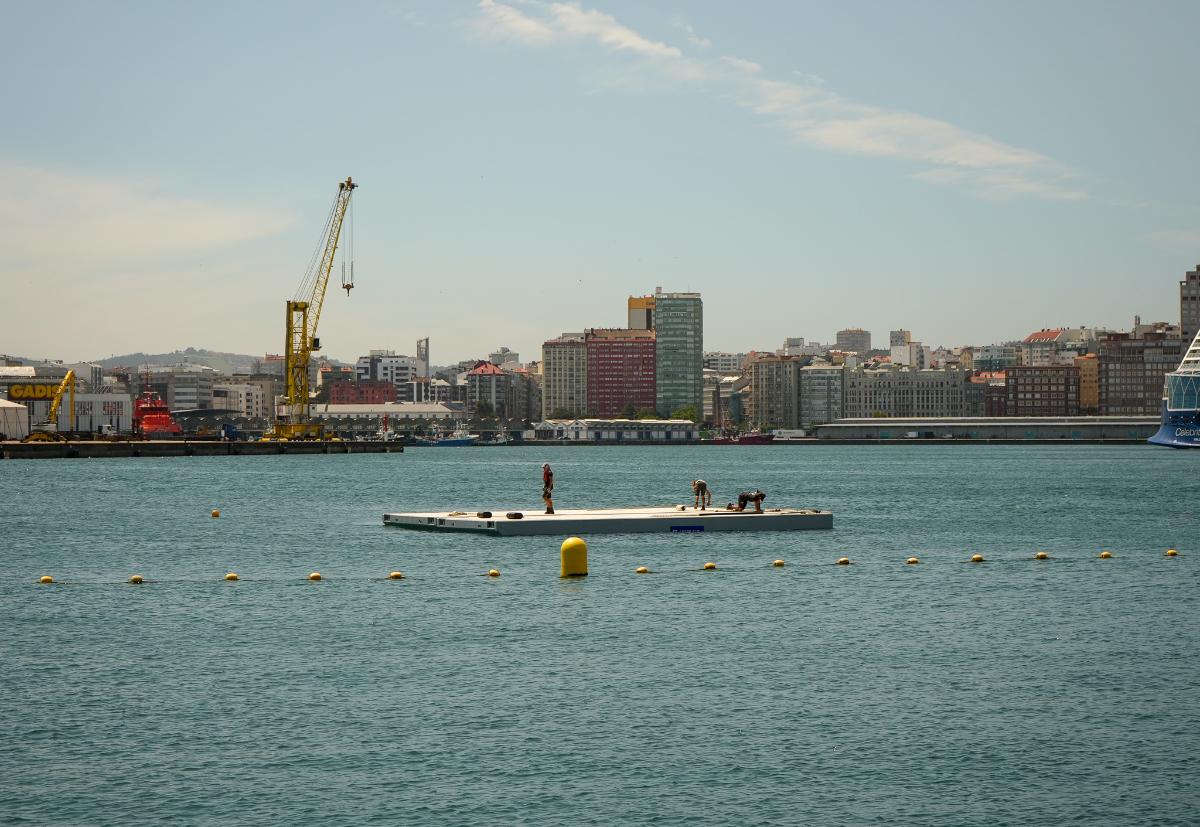 A Xunta vén de iniciar hoxe a instalación dos pantaláns da plataforma flotante que está a habilitar na zona do Parrote, na Coruña.