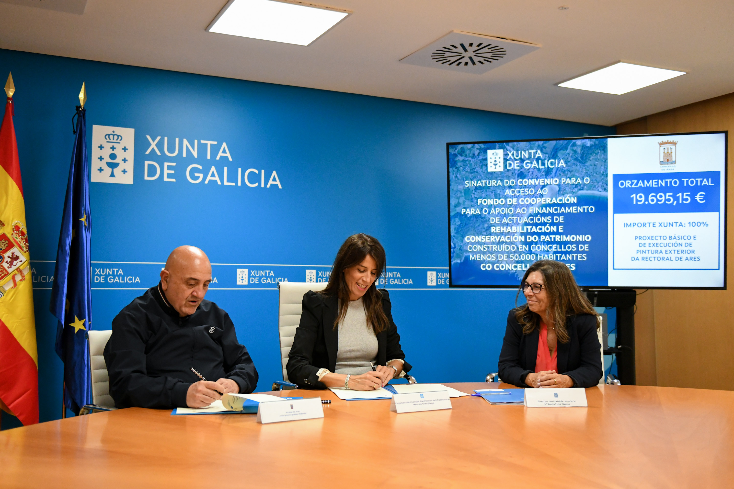 En concreto, o convenio firmado hoxe en San Caetano no marco deste fondo, ten como obxecto a posta en valor da Casa Reitoral de San Xosé de Ares, a través do proxecto de execución da pintura exterior.