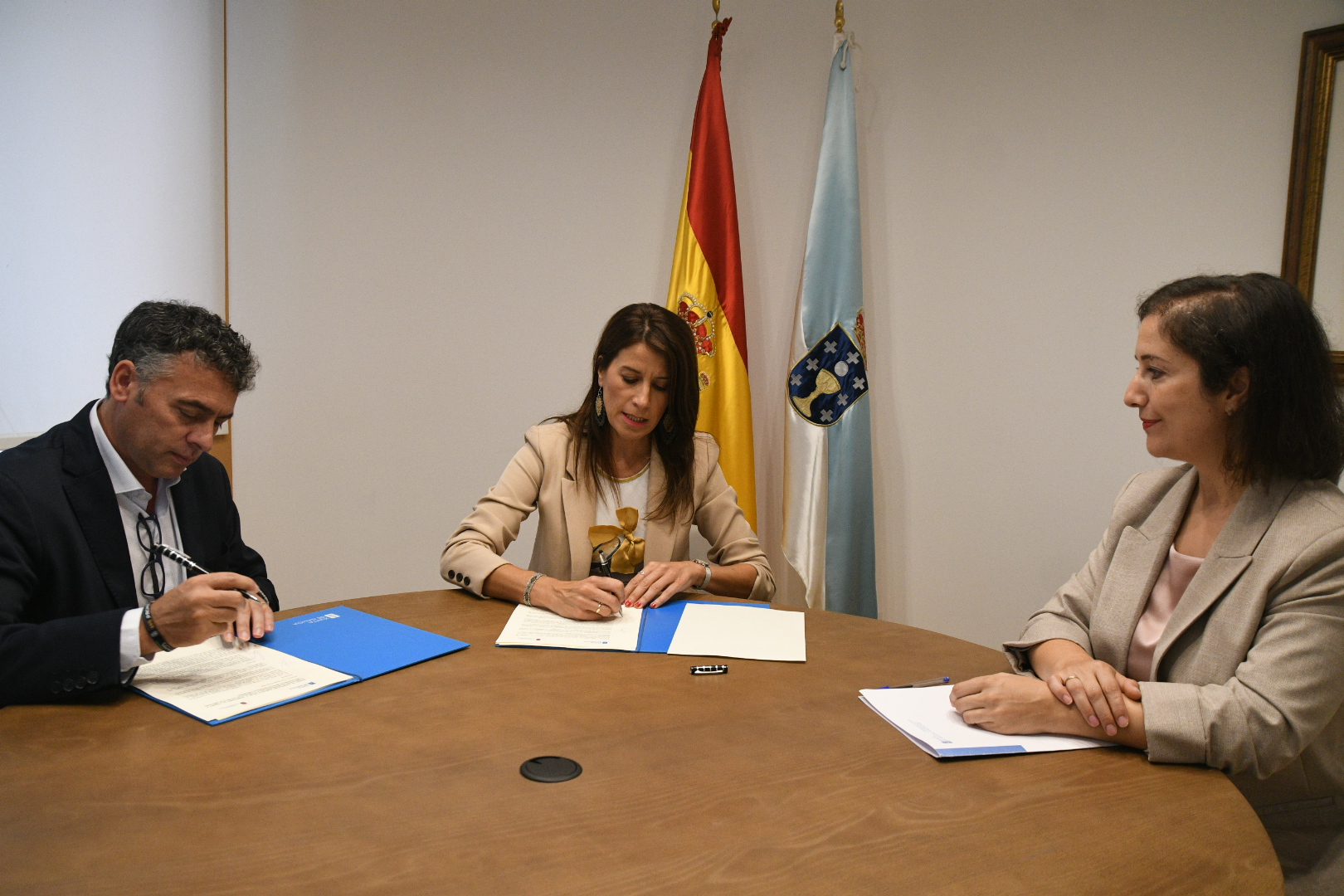 A conselleira de Vivenda e Planificación de Infraestruturas, María M. Allegue, asinou co alcalde, Avelino Pazos Pérez, o convenio para impulsar a actuación ao abeiro do Plan Hurbe