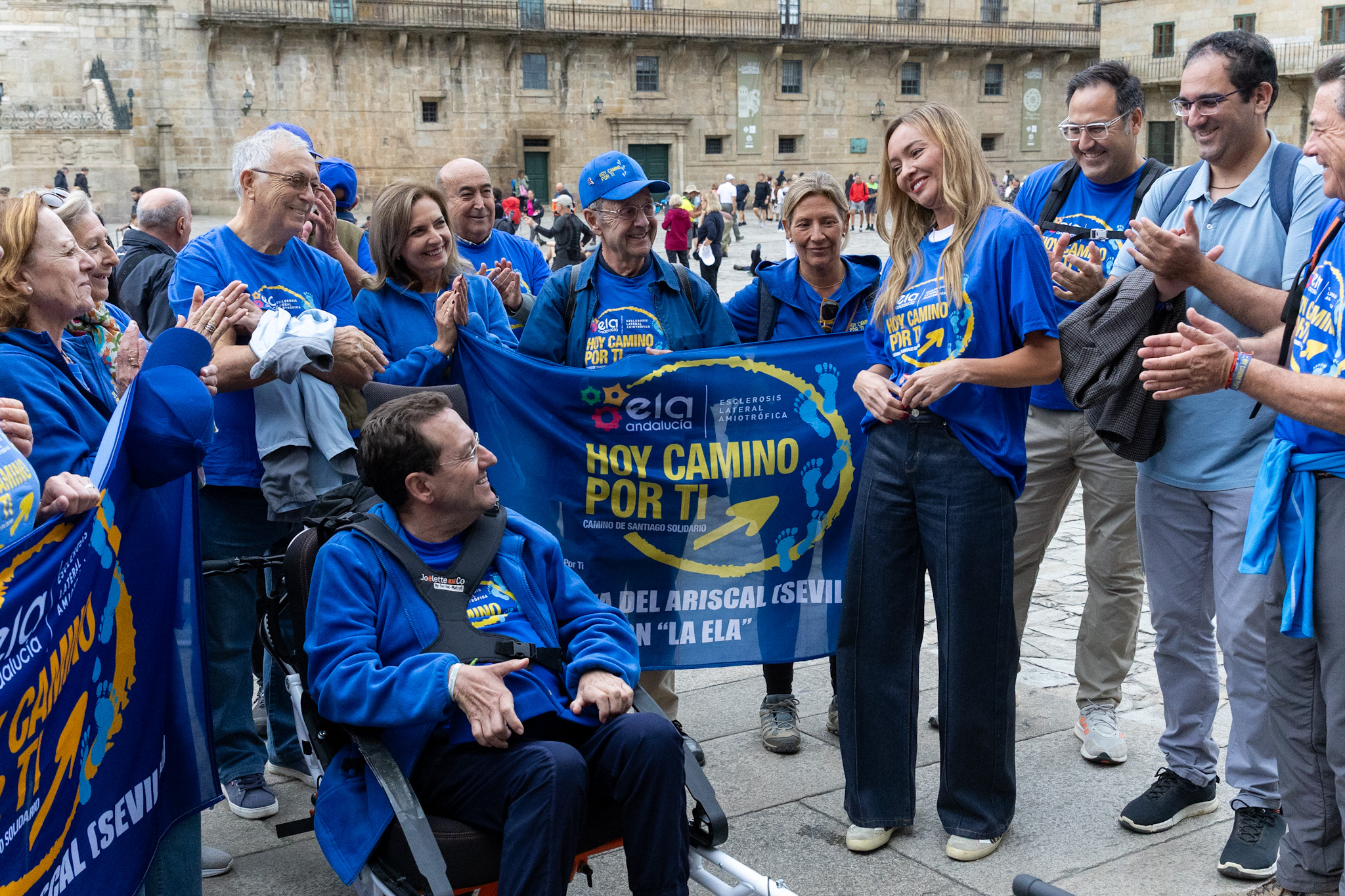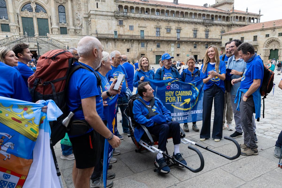 A conselleira de Política Social e Igualdade, Fabiola García, recibiu hoxe na praza do Obradoiro a un grupo de membros colectivo sen ánimo de lucro Hoy camino por ti que realizaron o Camiño de Santiago pola Vía da Prata para dar visibilidade á ELA e concienciar sobre esta enfermidade. Ademais, recadaron fondos para axudar á asociación ELA Andalucía.