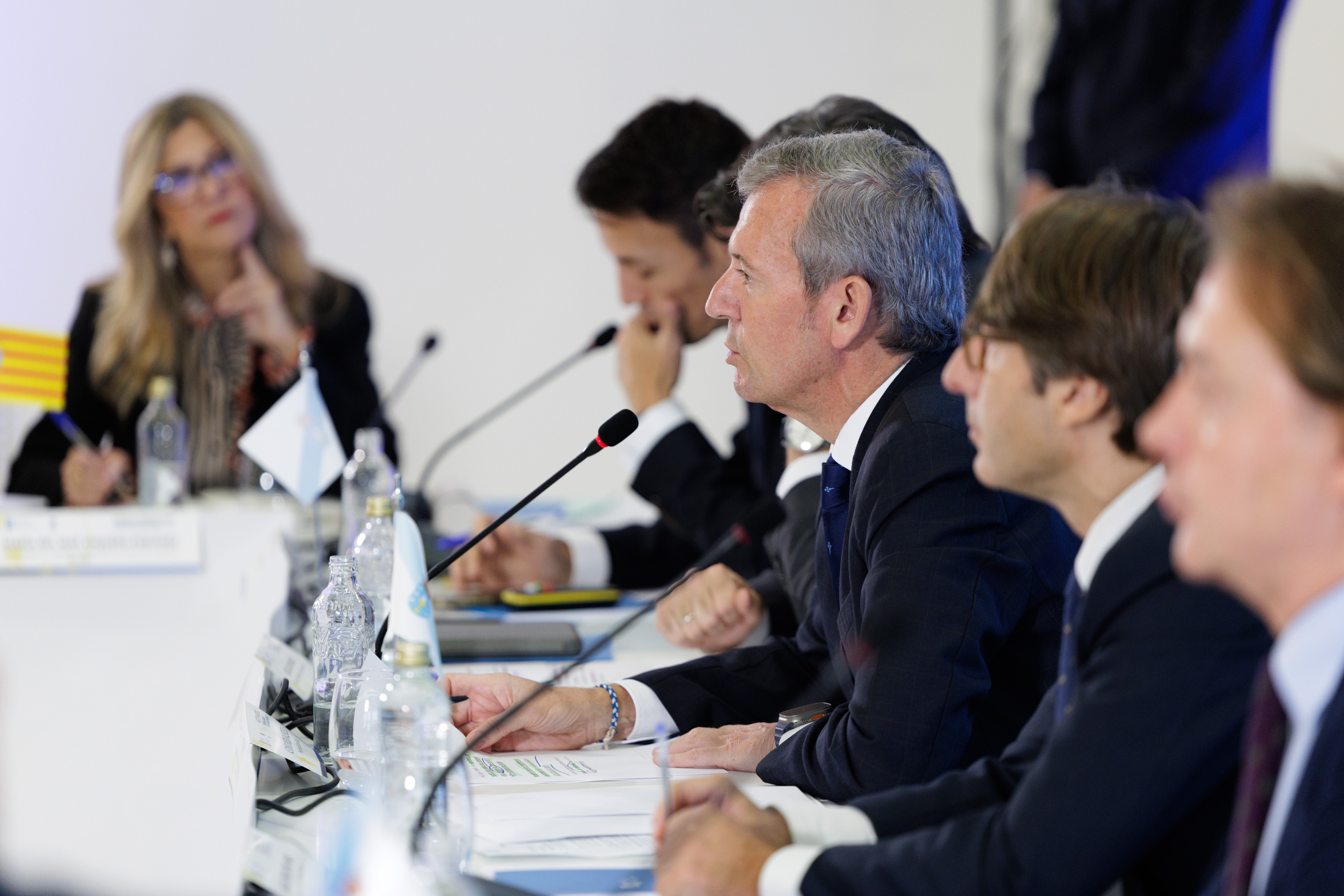 O xefe do Executivo autonómico fixo referencia ao debate sobre o novo Marco Financeiro Plurianual 2028-2034, sinalando a preocupación ante o risco de centralización que suporía a proposta da Comisión Europea de agrupar nun mesmo marco 14 fondos actuais. Considerou esencial manter a participación efectiva dos gobernos rexionais e locais no deseño e xestión das políticas europeas, lembrando que a cohesión territorial é o corazón da UE e non poder ser substituída nin diluída. Para Rueda é fundamental manter as políticas de cohesión “que tanto contribuíron a mellorar os territorios”.