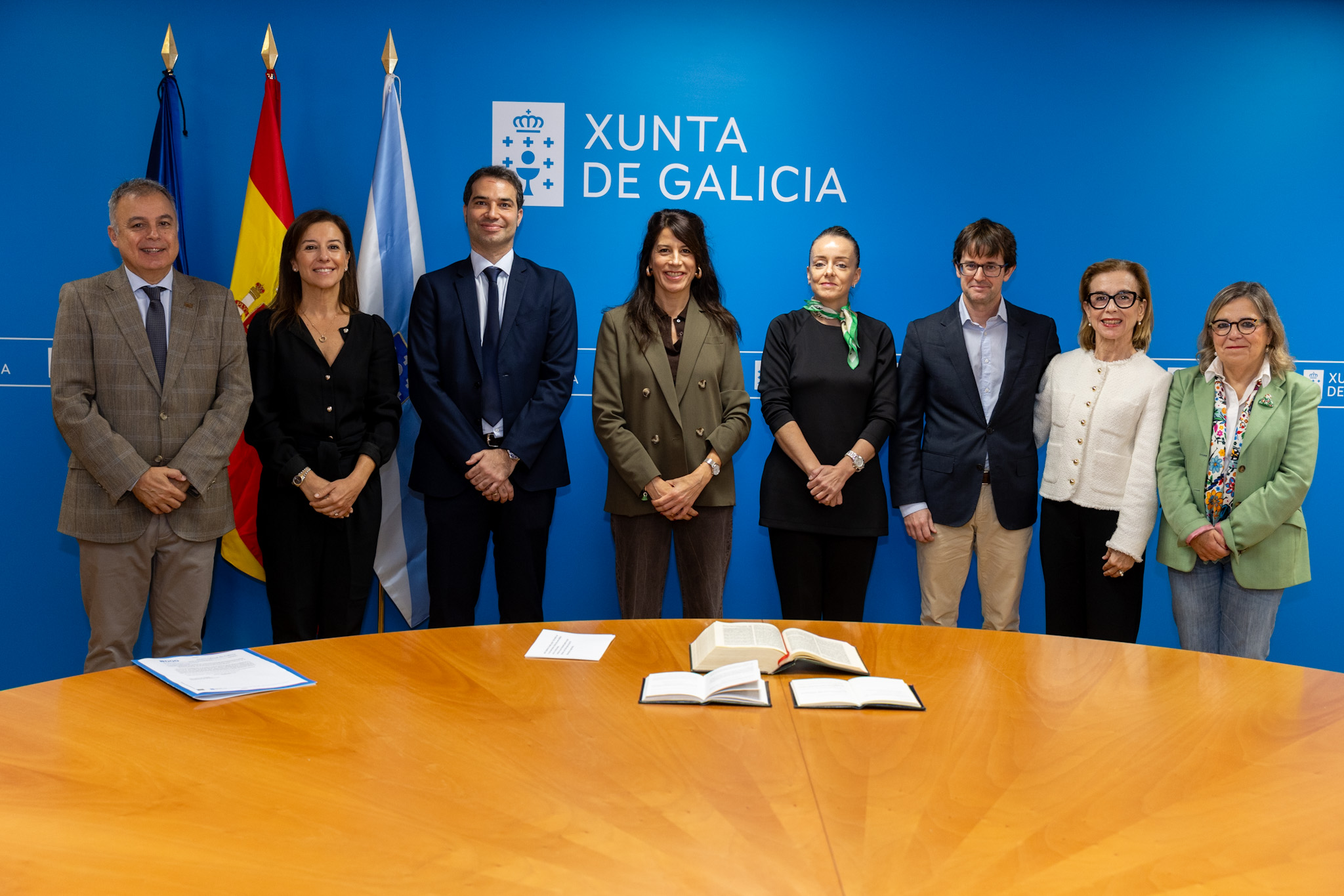 A conselleira de Vivenda e Planificación de Infraestruturas, María M. Allegue, xunto co secretario xeral técnico da consellería, Yago Borrajo, e o equipo directivo, presidiu hoxe esta toma de posesión.