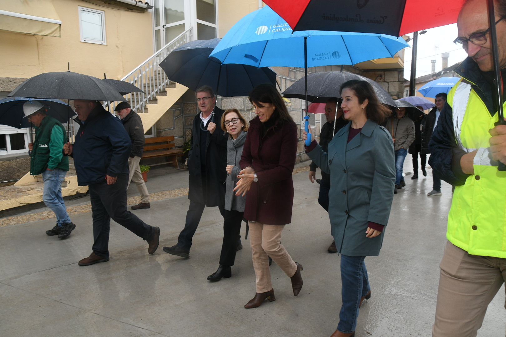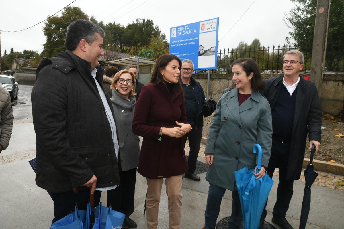 A conselleira de Vivenda e Planificación de Infraestruturas, María M. Allegue, xunto ao delegado territorial da Xunta, Manuel Pardo, e a directora xeral de Urbanismo, Encarnación Rivas, achegouse hoxe ata este núcleo ourensán para coñecer o resultado destas actuacións que se impulsaron ao abeiro do convenio entre a Xunta, que aportou o 70 % do investimento, e o Concello de Sandiás, que achegou o 30 % restante.