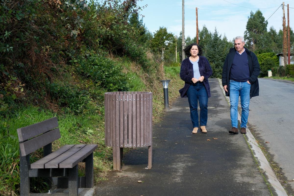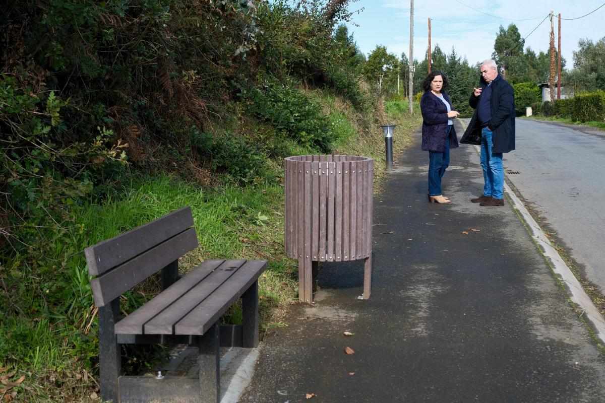Belén do Campo explicou que este municipio conta con robledales, ríos e un patrimonio natural relevante, o que require unha integración harmónica do mobiliario coa paisaxe, neste senso os bancos e as papeleiras instaladas teñen deseño adaptado á contorna rural e natural do Camiño de Santiago, evitando elementos que desentoen coa estética da zona, priorizando texturas que respecten a identidade paisaxística da contorna.