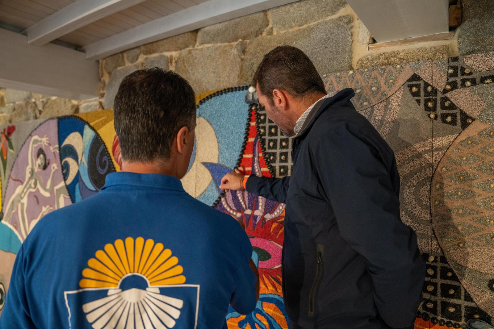 Tal e como explicou o conselleiro, a peza, que conta cunha superficie aproximada de 12x2 metros e reproduce fragmentos de obras da autora, está elaborada a partir de materiais como cunhas de mexillón, ameixa ou lapas, así como sementes ou follas. “Desde as institucións debemos tender a man a estas iniciativas que fan fincapé na herdanza dunha figura senlleira da nosa comunidade”, explicou o conselleiro, que aproveitou para felicitar o traballo dos artesáns da Asociación Cultural Cunchas e Flores.