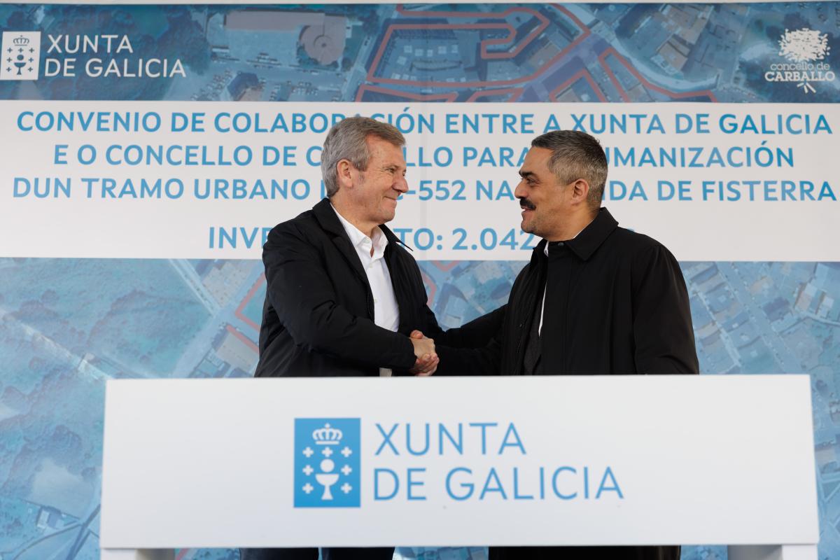 Así, Rueda salientou, nunha visita na que tamén estivo presente a conselleira de Vivenda e Planificación de Infraestruturas, María Martínez Allegue, que se van investir 2 millóns de euros na mellora dun tramo da AC-552 ao seu paso polo núcleo urbano para transformalo nun espazo de convivencia e desfrute da cidadanía, máis verde e sostible. Será a través do convenio asinado hoxe co Concello de Carballo polo que a Xunta achegará o 70% do custe das obras (1,4 millóns de euros) e o Concello –que asume a redacción do proxecto e a súa execución–, o 30% restante (613.000 €). O acordo tamén inclúe a cesión da titularidade deste tramo de estrada ao á Administración municipal.