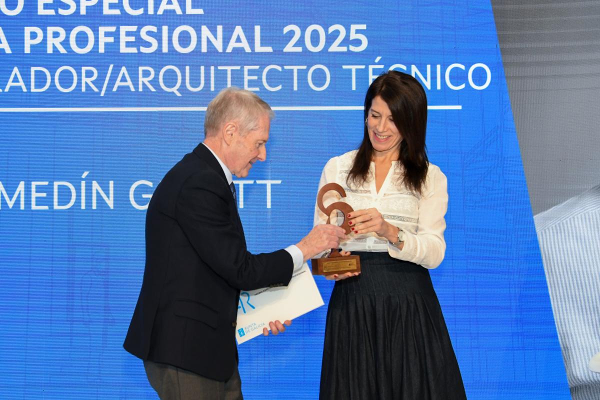 A Xunta recoñece as traxectorias profesionais de Jesús Irisarri, Guadalupe Piñera e Roberto Medín nos Premios de Arquitectura e Rehabilitación de Galicia 2025.
