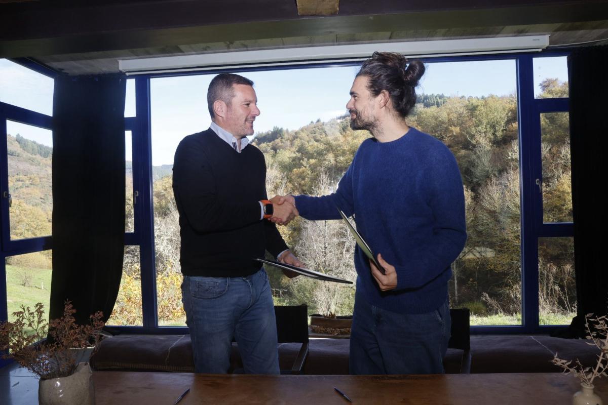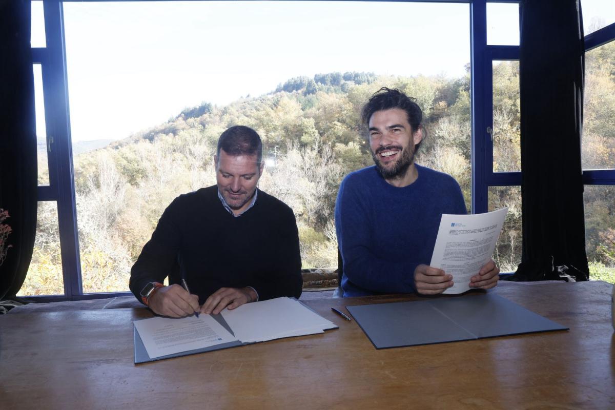 O conselleiro de Cultura, Lingua e Xuventude, José López Campos, e o director de cine Oliver Laxe asinaron hoxe en Navia de Suarna o convenio de colaboración a través do que a Xunta de Galicia inviste 50.000 euros na campaña de promoción internacional da película Sirat como candidata oficial de España para optar ao Oscar á mellor película internacional.
