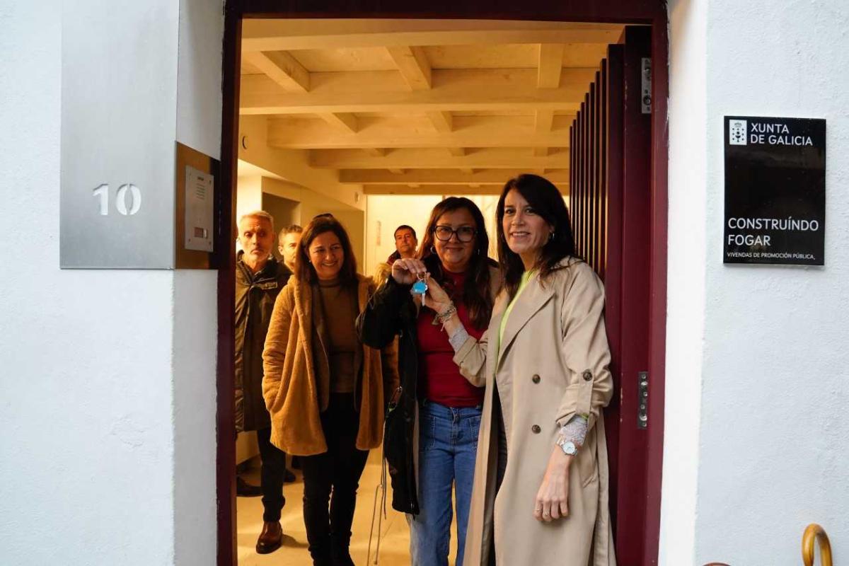 A conselleira de Vivenda e Planificación de Infraestruturas, María M. Allegue, entregou hoxe as chaves de tres novas vivendas públicas en alugueiro accesible, rehabilitadas ao abeiro do programa Rexurbe, situadas no centro histórico de Betanzos.