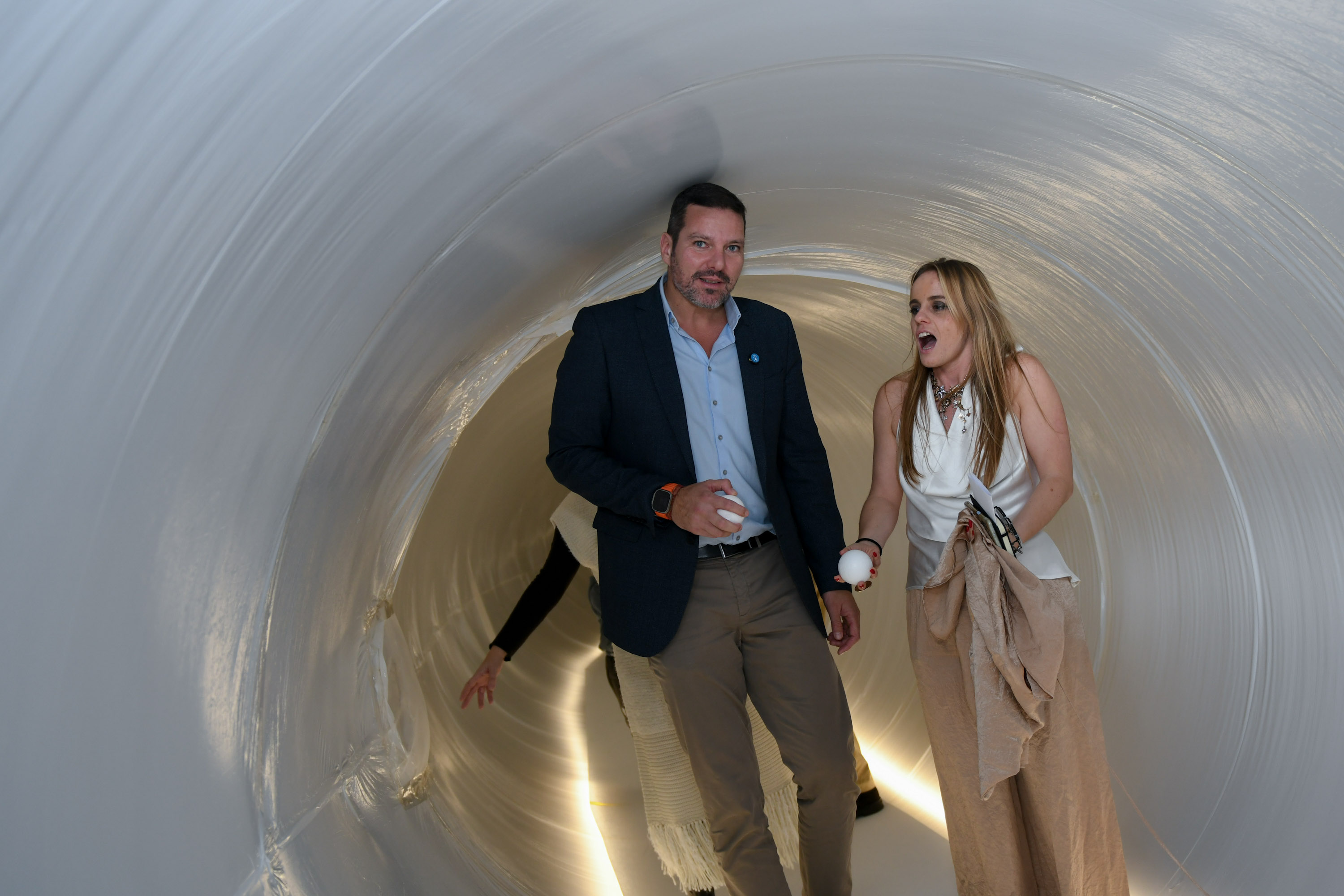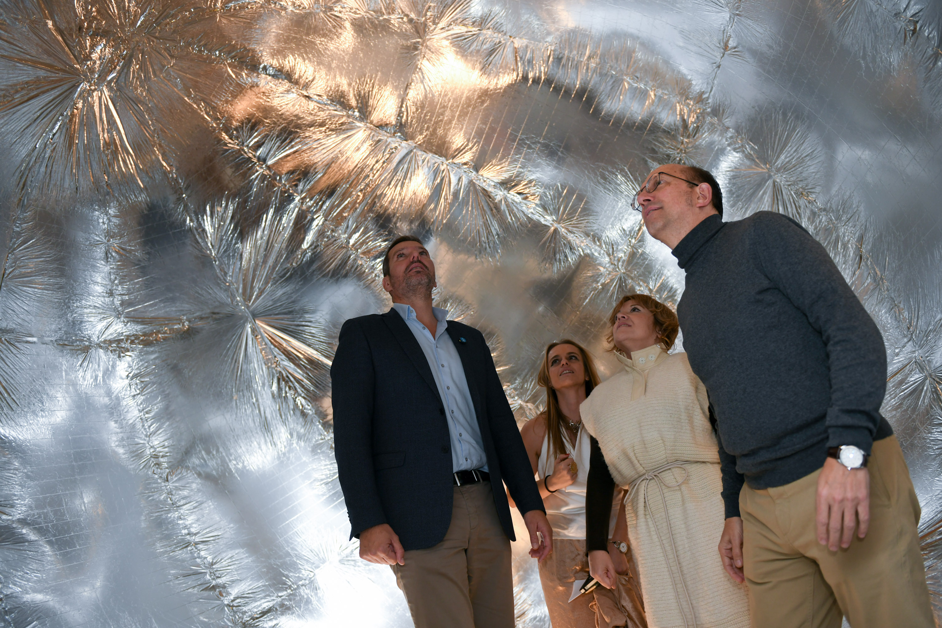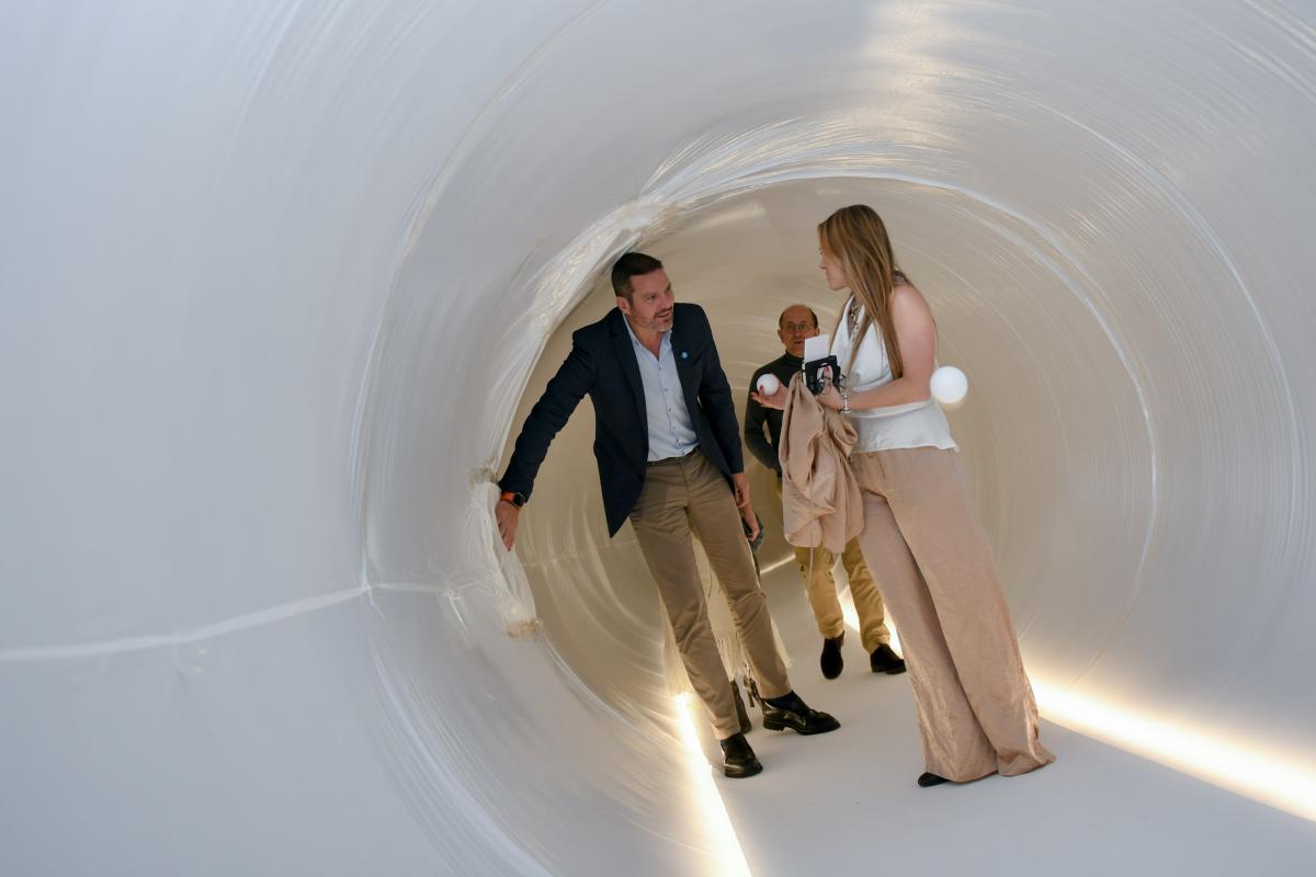 O Hall de Tirantes do Museo Centro Gaiás transfórmase desde hoxe nunha paisaxe branca e dourada, con grandes estruturas inchables como esferas luminosas e corredores translúcidos parcialmente transitables no seu interior