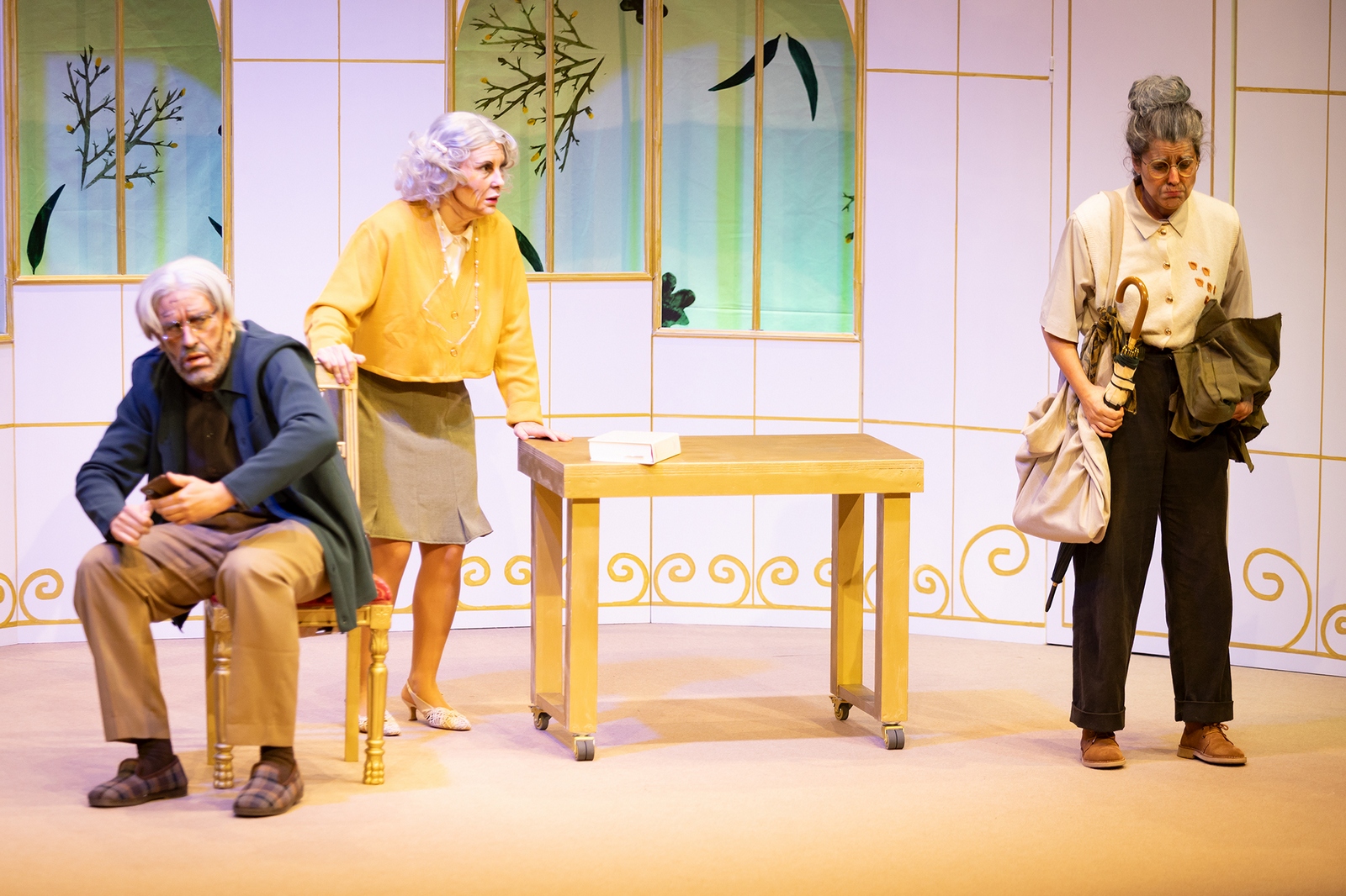 Os tres anciáns escollen así representar a obra de Manuel María Aventuras e desventuras dunha espiña de toxo chamada Berenguela, elixindo cada un o personaxe que desexa interpretar. O espectáculo reivindica, con humor e tenrura, o dereito a existir con dignidade en todas as etapas da vida, recoñecendo o teatro como unha ferramenta de rebelión, imaxinación e dignificación das persoas maiores.