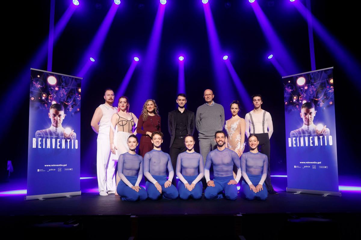 O espectáculo Reinventio, que ofrecerá tres pases na cidade, mañá, ás 20,00 horas e o sábado ás 18,00 e ás 20,30 horas, combina números de ilusionismo, acrobacias e danza contemporánea nunha proposta de 90 minutos que aborda a ilusión, a superación e o espírito transformador do Camiño de Santiago nun relato visual sobre a capacidade de reinventarse.