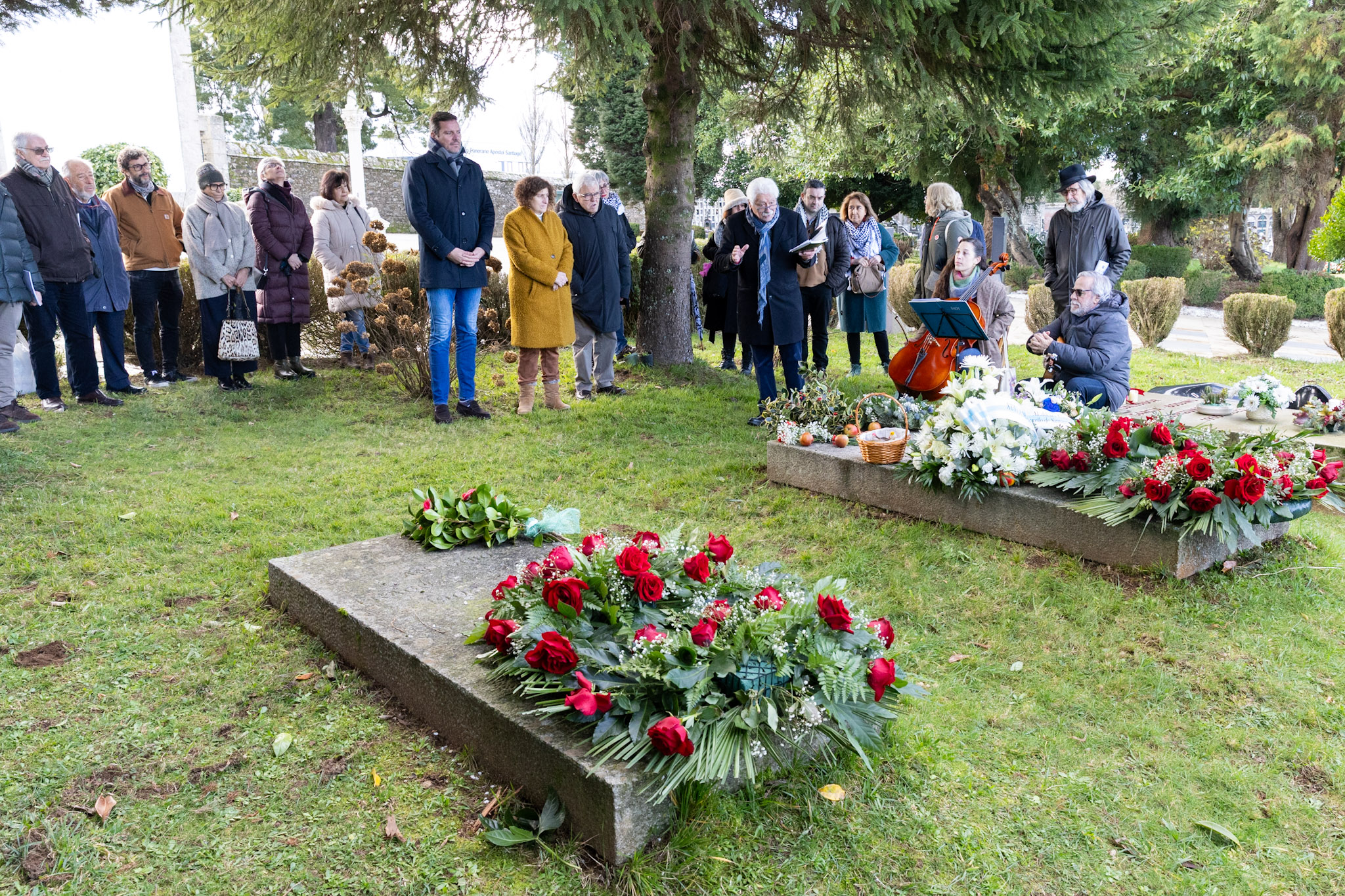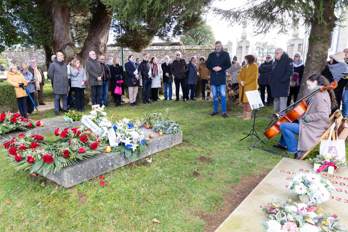 O conselleiro de Cultura, Lingua e Xuventude, José López Campos, acompañado polo director xeral de Cultura, Anxo M. Lorenzo, participou hoxe na ofrenda floral levada a cabo no cemiterio compostelán de Boisaca na honra de “dúas figuras ilustres da nosa cultura como son Ramón María del Valle-Inclán e Isaac Díaz Pardo”, lembrando así un ano máis nesta data os aniversarios dos seus pasamentos, 90 anos e 14, respectivamente.