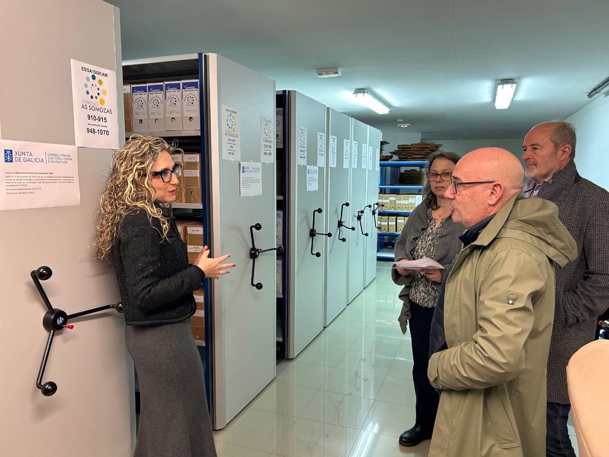 A delegada territorial da Xunta en Ferrol, Martina Aneiros, desprazouse esta mañá ao municipio de As Somozas para visitar xunto ao alcalde da localidade, Juan Alonso Tembrás, as dependencias municipais que acollen o arquivo deste concello que resultou beneficiario dunha achega na última convocatoria das axudas da Consellería de Cultura, Lingua e Xuventude para a realización de actividades que teñan por obxecto a descrición de series documentais segundo a metodoloxía arquivística nos arquivos de concellos e de entidades sen fin de lucro galegas.