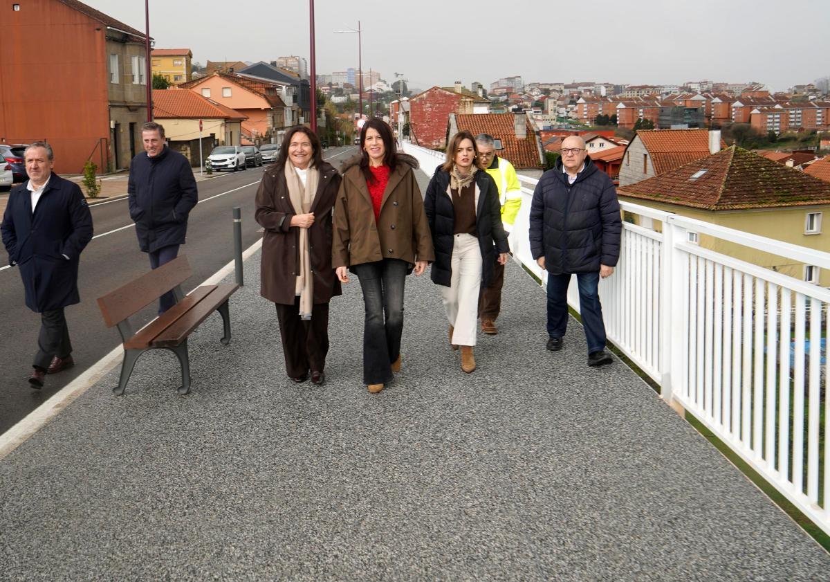 A conselleira de Vivenda e Planificación de Infraestruturas, María Martínez Allegue, xunto á delegada territorial da Xunta en Vigo, Ana Ortiz, e a directora xeral de Mobilidade, Judit Fontela, visitou hoxe a actuación realizada no viario