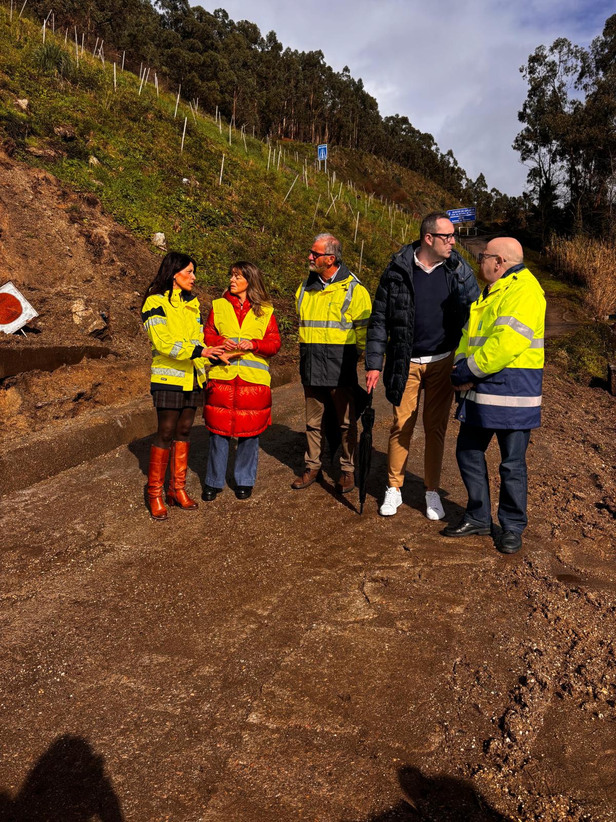 Allegue, xunto coa directora da Axencia Galega de Infraestruturas, María Deza, o director territorial da Consellería en Pontevedra, José Manuel González, e técnicos da AXI, achegouse para coñecer os traballos acometidos nesta zona na que o mércores tivo lugar un derrubamento por mor dos recentes temporais.