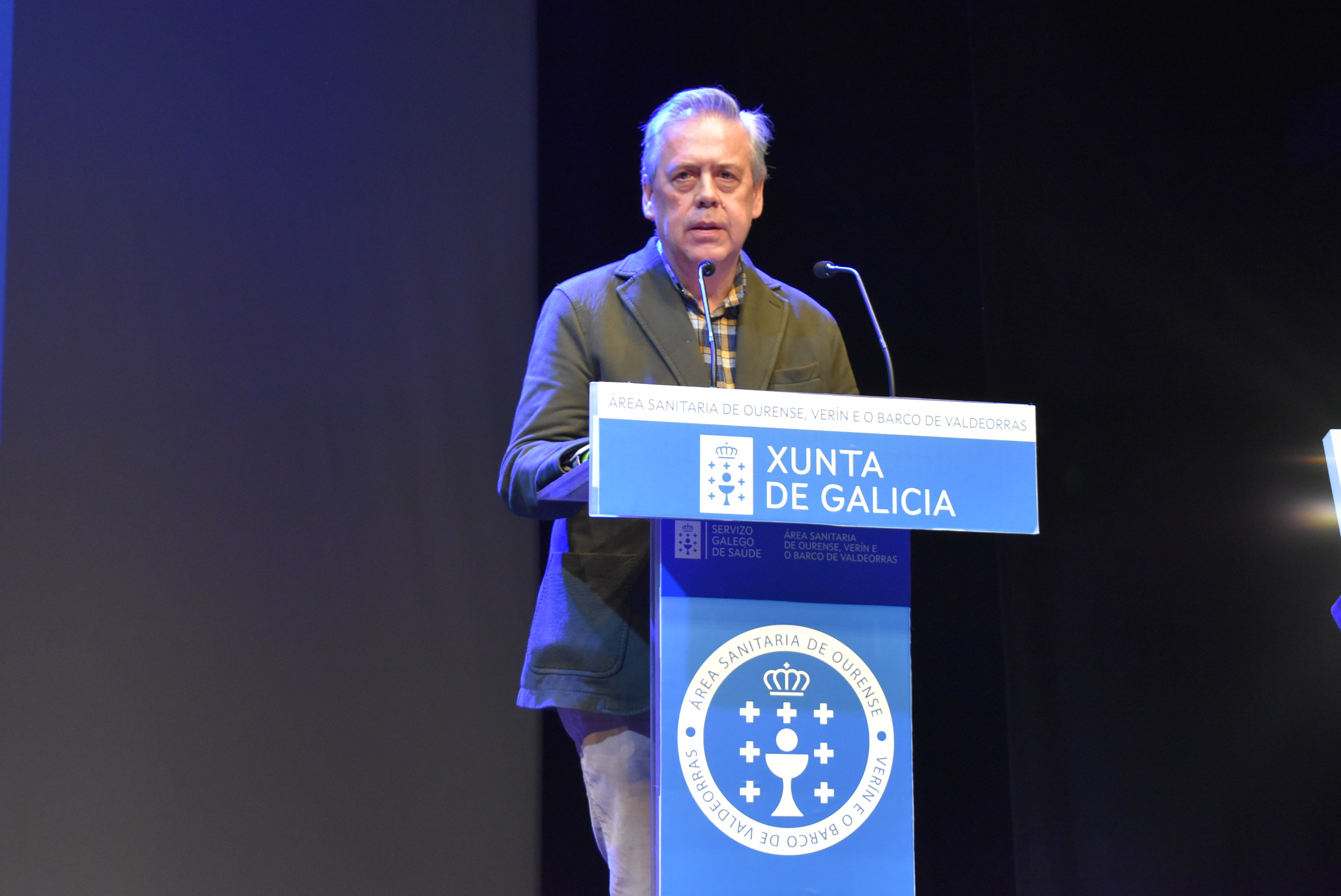 O titular da carteira sanitaria da Xunta, acompañado do xerente da área sanitaria de Ourense, Verín e O Barco de Valdeorras, Santiago Camba, interveu no acto de homenaxe aos empregados da sanidade pública galega desta área, que tivo lugar esta mañá no Teatro Principal de Ourense.