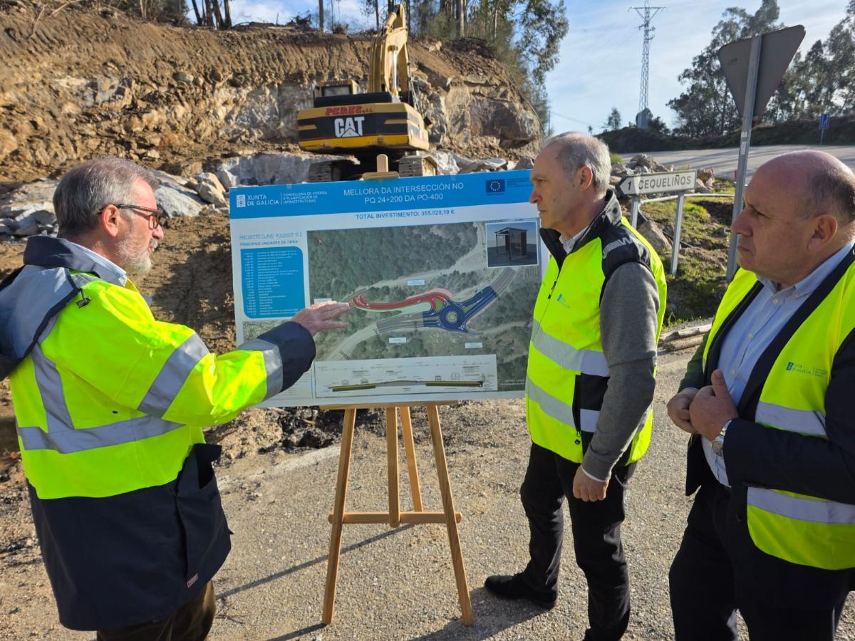 O delegado territorial da Xunta en Pontevedra, Agustín Reguera, visitou esta mañá, xunto ao alcalde de Arbo, Horacio Gil, o avance das obras de mellora da intersección na PO-400, á altura do acceso a Cequeliños.