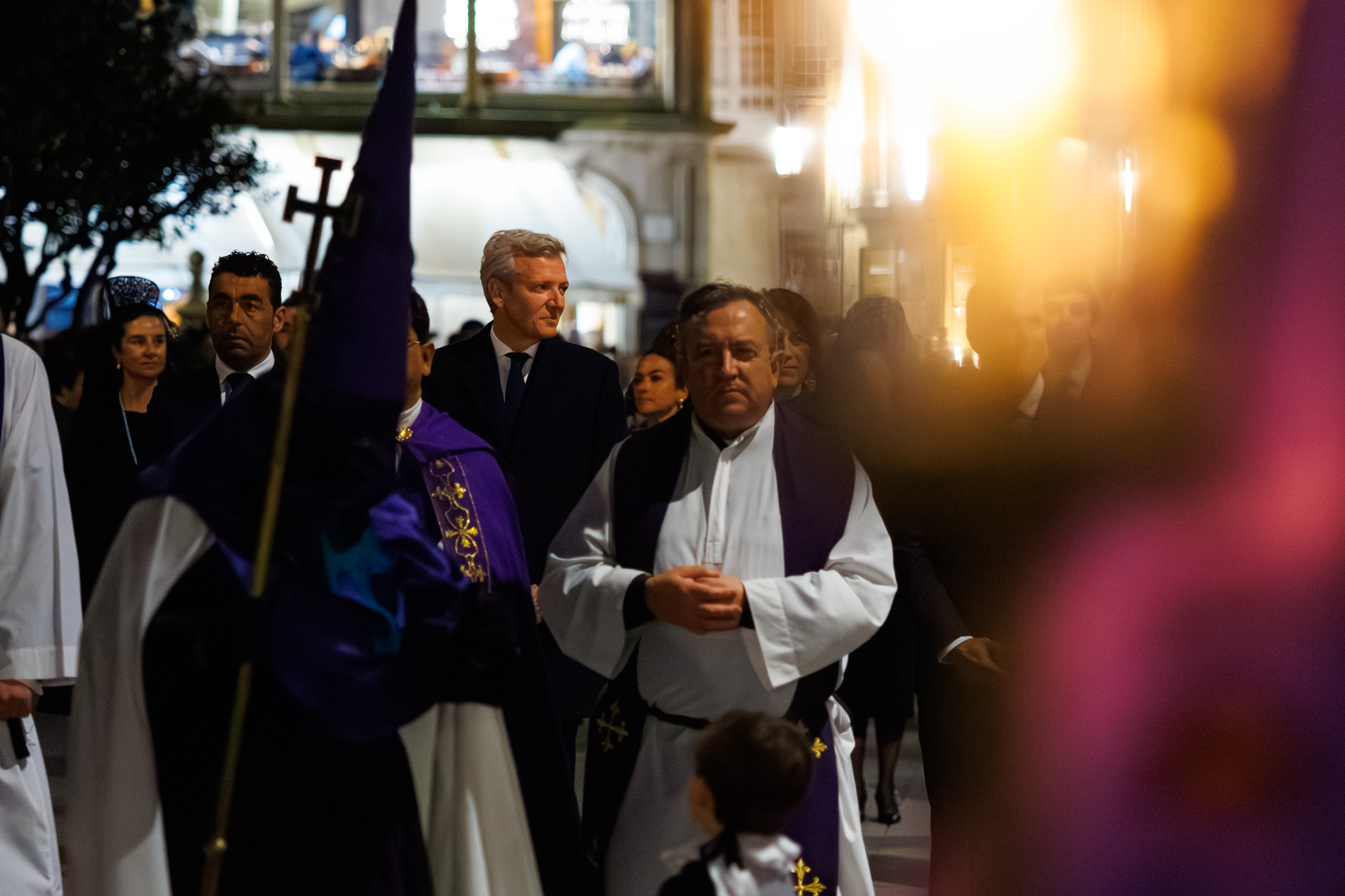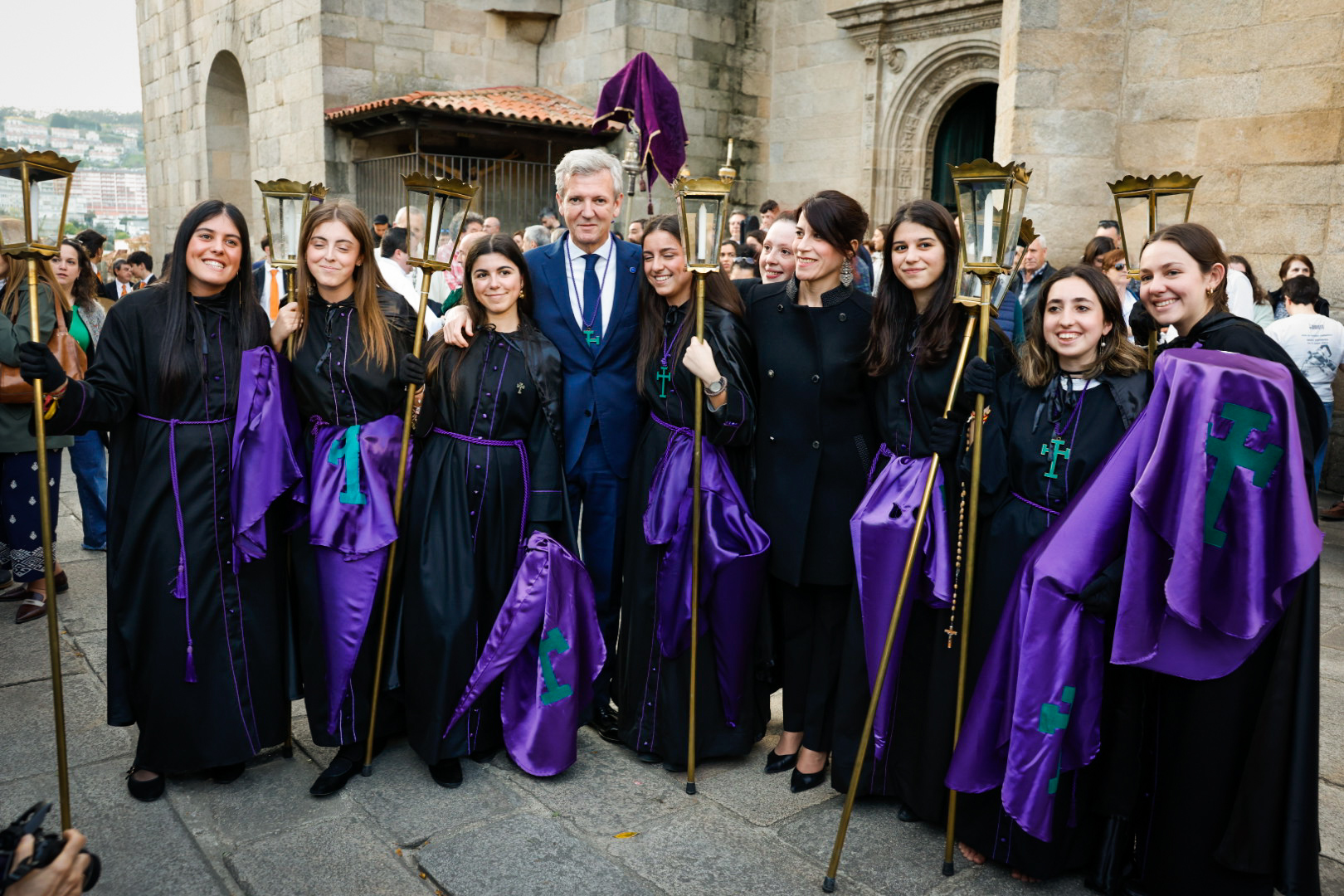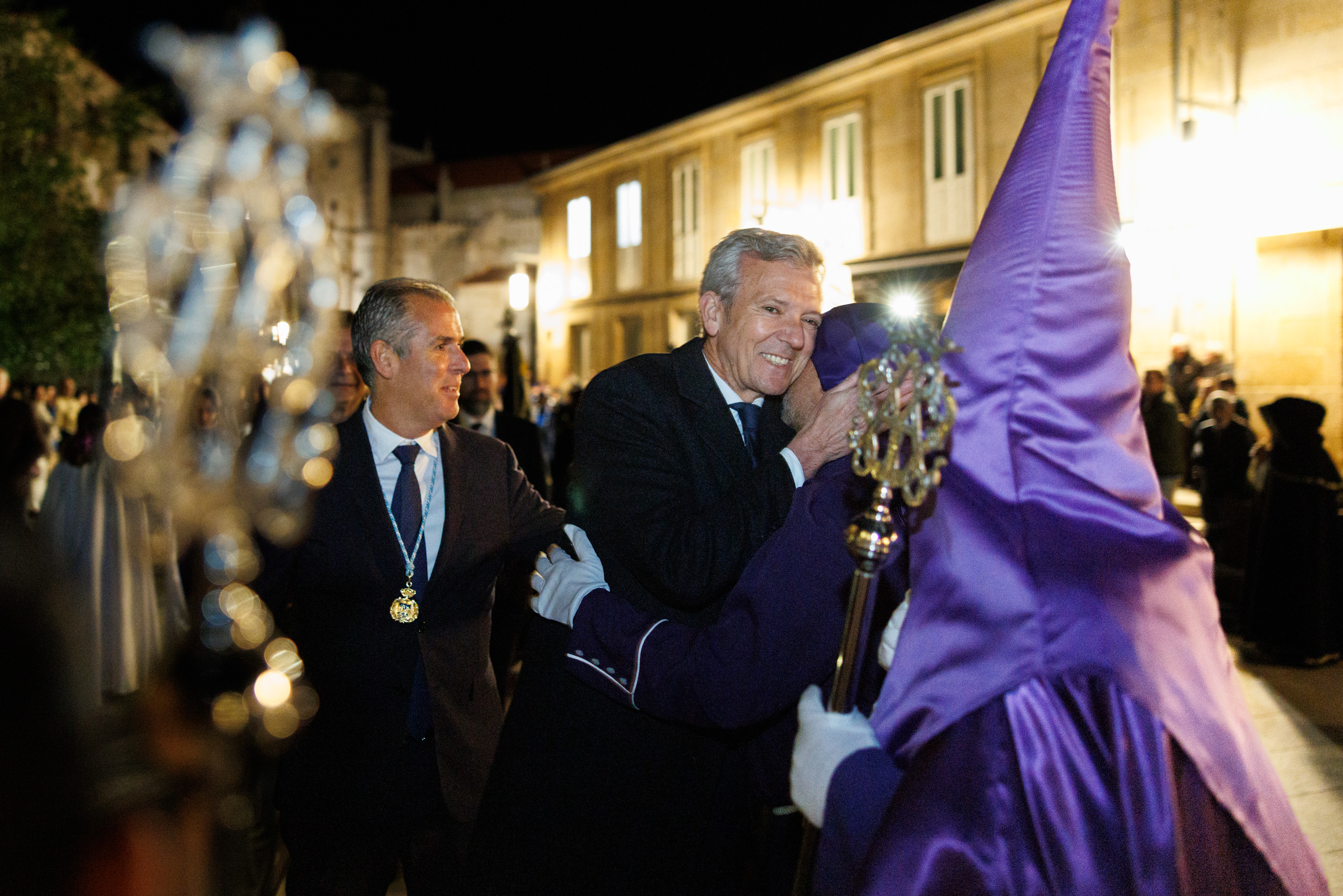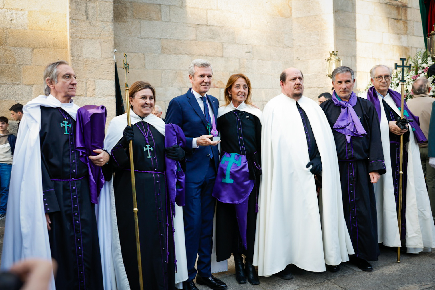 O presidente da Xunta, Alfonso Rueda, acompañado da conselleira de Vivenda e Planificación de Infraestruturas, María Martínez Allegue, participou hoxe na procesión dos Pasos do Xoves Santo que se celebrou na cidade de Pontevedra.