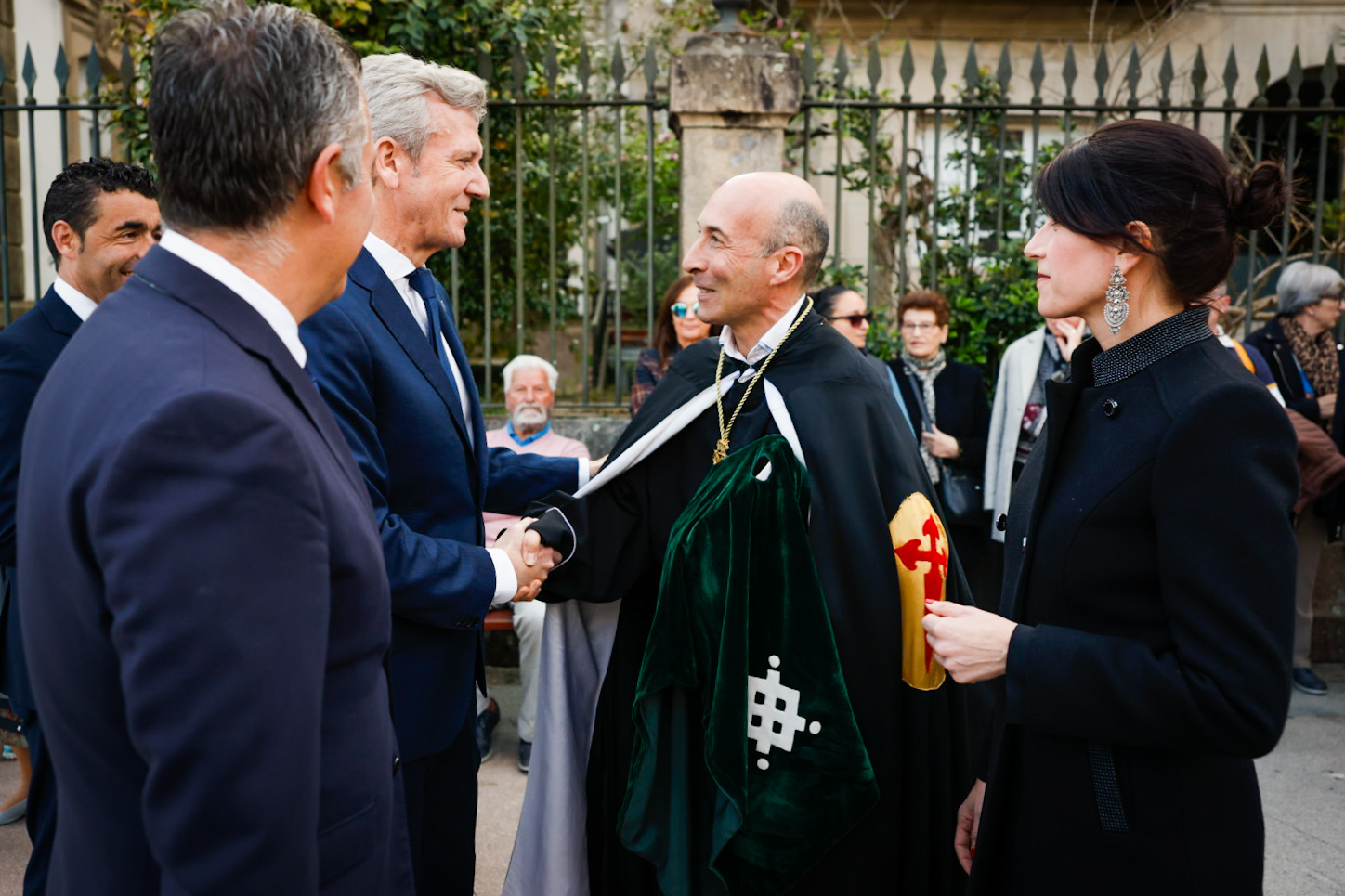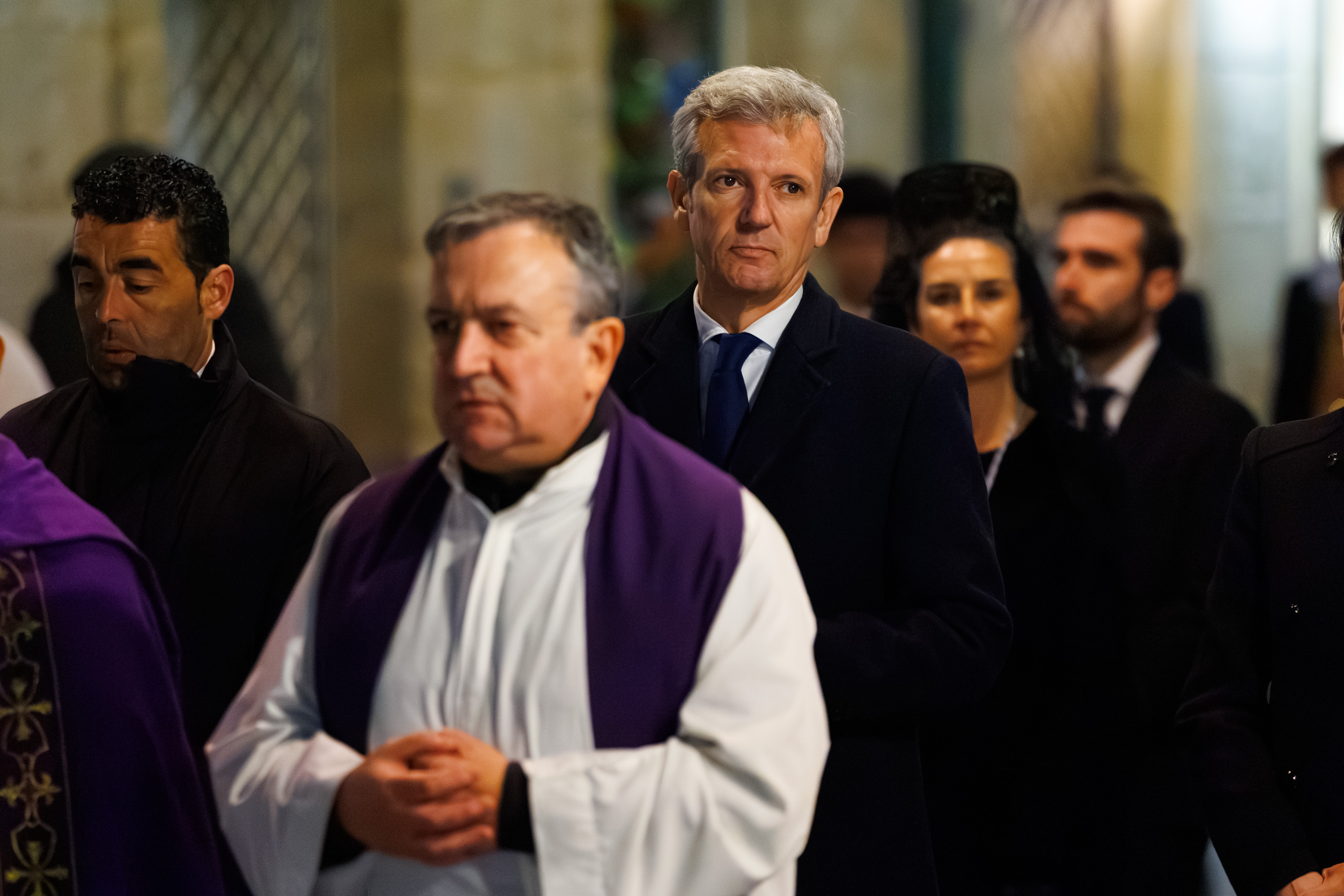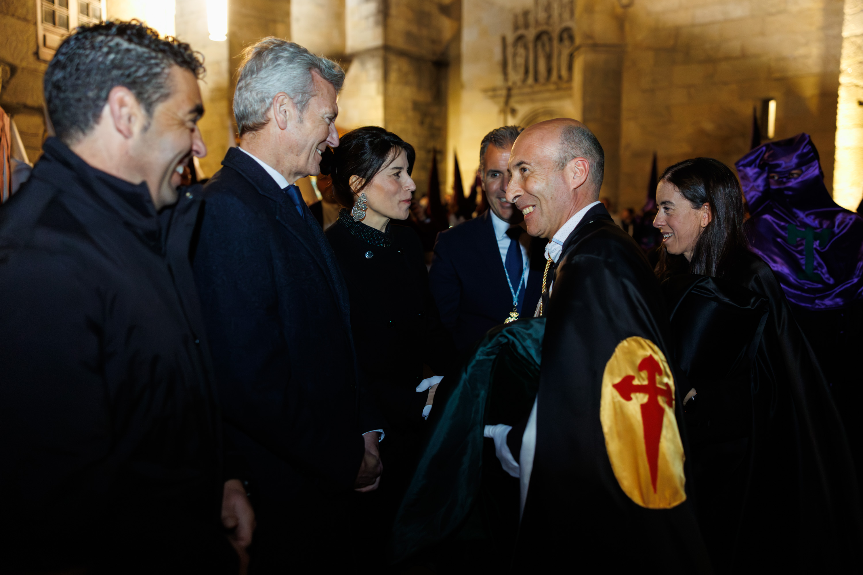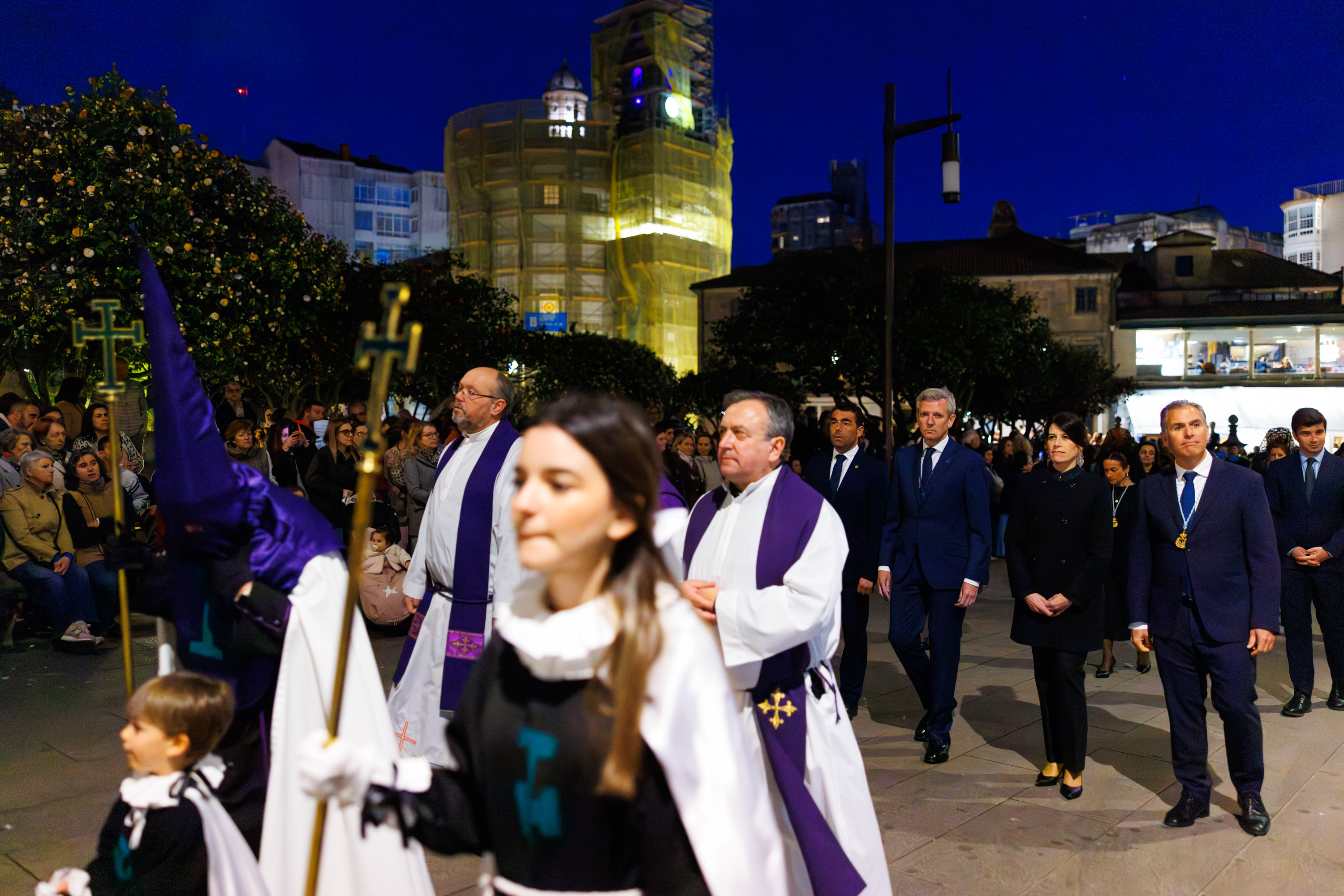 O presidente da Xunta, Alfonso Rueda, acompañado da conselleira de Vivenda e Planificación de Infraestruturas, María Martínez Allegue, participou hoxe na procesión dos Pasos do Xoves Santo que se celebrou na cidade de Pontevedra.