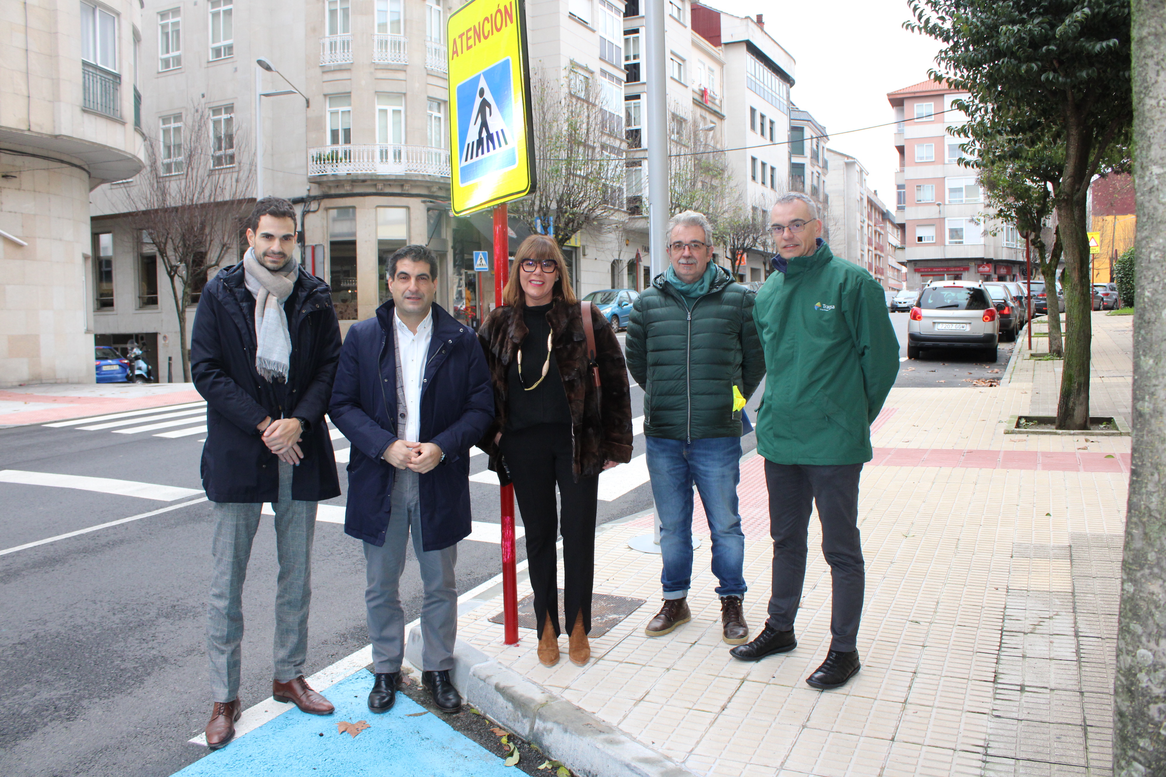 Tal e como sinalaron Gabriel Alén e Pablo Fernández Vila durante o percorrido pola zona, as obras levadas a cabo permiten incrementar a protección dos peóns e mellorar a súa visibilidade, grazas ao reforzo da sinalización; o balizamento e iluminación dos pasos de peóns, incorporando sistemas de detección de presenza; e a renovación do pavimento.