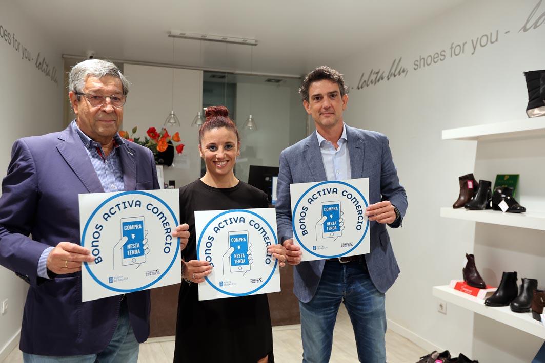 Arias visitou catro comercios da cidade de Lugo que participan na iniciativa -Pekes, Lolita Blu, Baron e Lectocosmos- e explicou que cada persoa poderá descargar na web (www.bonosactivacomercio.gal) un bono desconto de 30 euros.