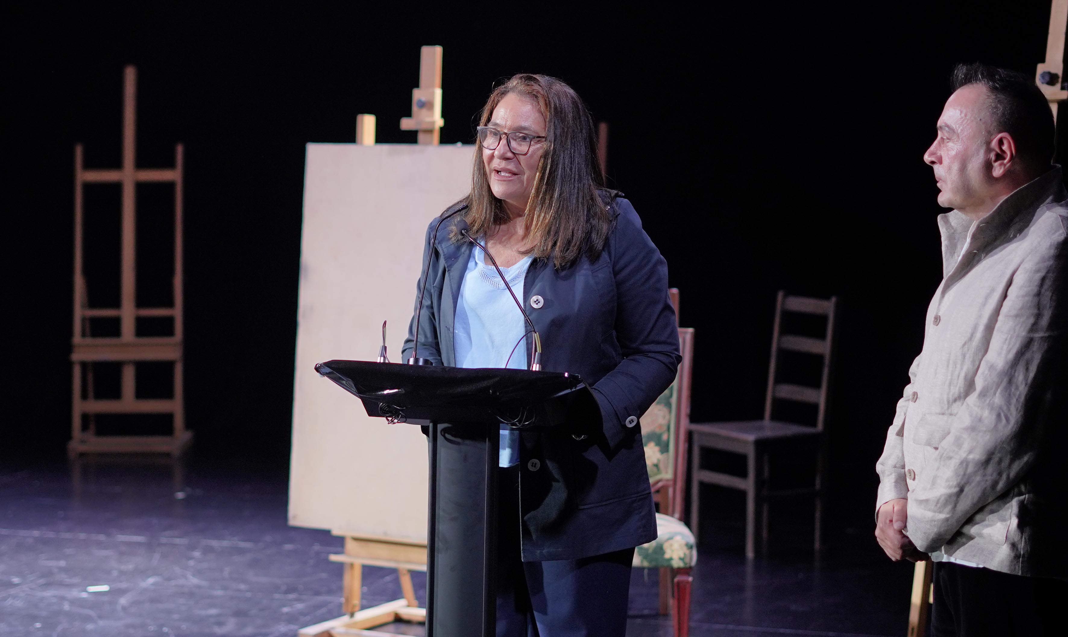Ana Ortiz deu a benvida á dramaturga Ana Vallés, que impartiu a lección inaugural, e salientou tanto o intercambio de alumnado con países africanos como a presenza da escola na Cuatrienal de Praga e no Proxecto Nós