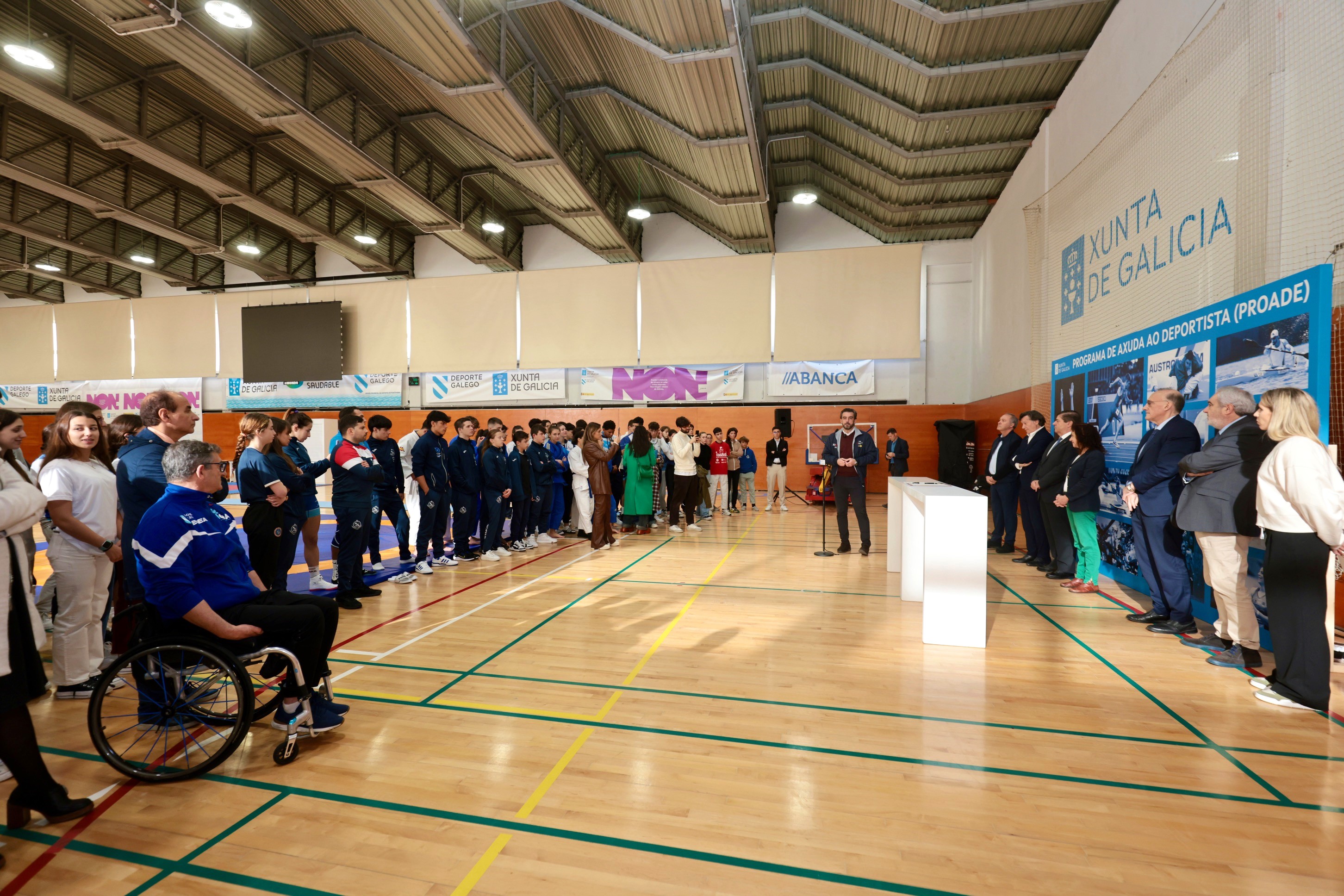 O vicepresidente primeiro e conselleiro de Presidencia, Xustiza e Deportes, Diego Calvo, presentou hoxe con deportistas de alto nivel en activo e xa retirados o Programa de Axuda ao Deportistas (Proade), que se canalizará desde a Oficina de Atención ao Deportista para atender as demandas sobre orientación e conciliación laboral e académica ou asistencia psicolóxica. Foron precisamente as respostas máis repetidas nas máis de 700 enquisas que responderon deportistas da comunidade sobre o que máis precisan e que serviu de base para deseñar Proade como unha ferramenta para prestar asesoramento psicolóxico, titorización e orientación no ámbito do deporte de alto nivel.