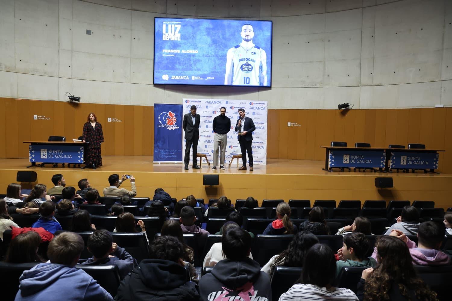 O xogador do Breogán Francis Alonso pecha na sede da Xunta o ciclo ‘Luz ao deporte’, que promove a Fundación Breogán