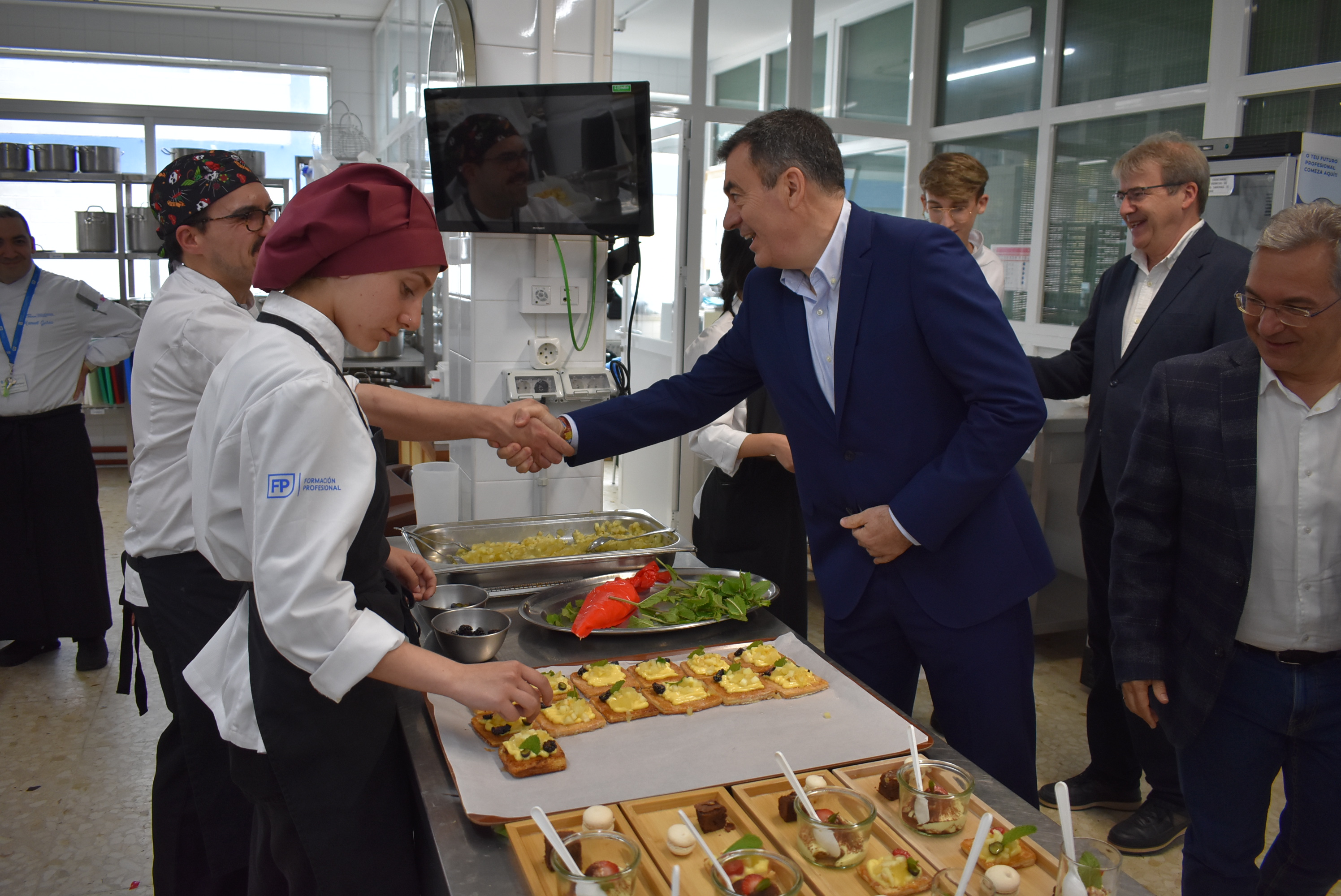 O conselleiro de Educación, acompañado polo delegado territorial da Xunta en Ourense, participa na inauguración da ampliación dos talleres de cociña