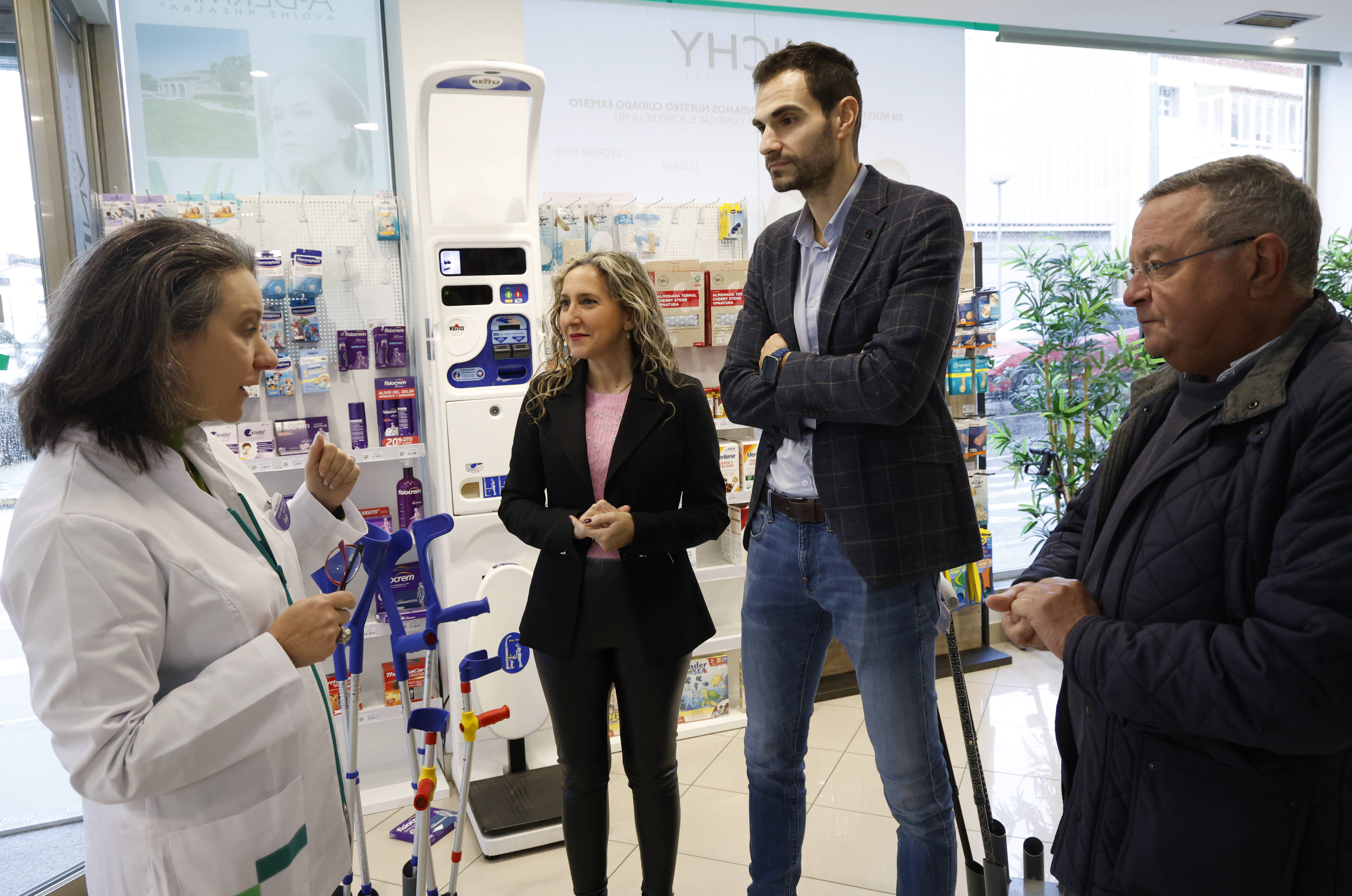 A delegada territorial de Ferrol, Martina Aneiros, e o director xeral de Planificación Enerxética e Minas, Pablo Fernández Vila, visitaron esta mañá a oficina de farmacia de María Luisa Hidalgo, beneficiaria do programa