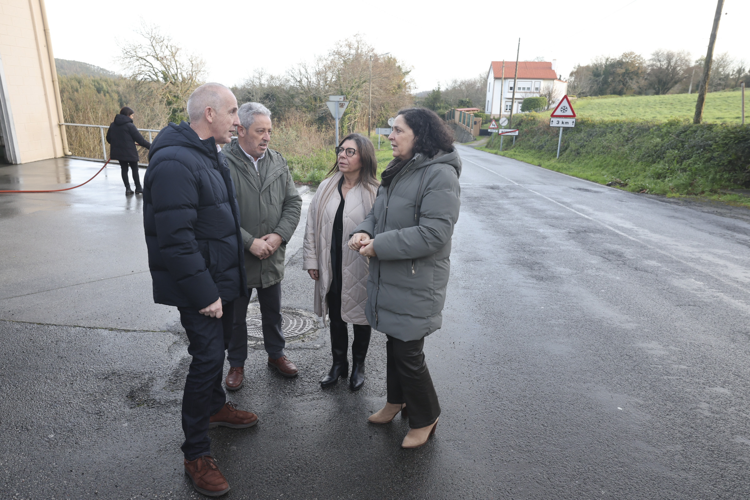 Belén do Campo supervisa a zona na que se levará a cabo o acondicionamento da AC-421 na Agualada, en Coristanco, que suporá un investimento de case 764.000€ e inclúe unha senda peonil