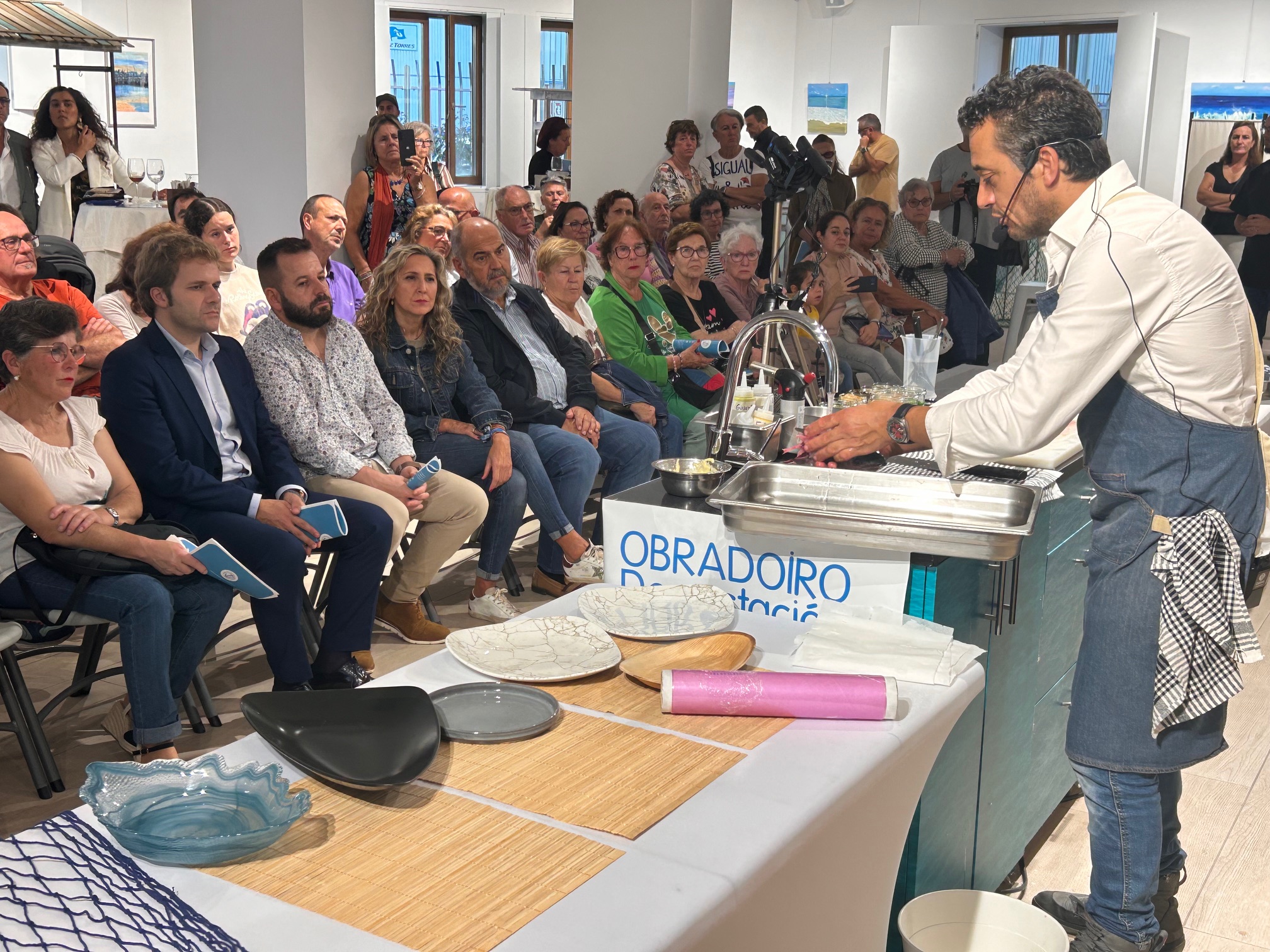 Alfonso Villares asiste ao terceiro acto de despece de peixe espada que Interfish realiza en directo e visita os expositores das empresas galegas