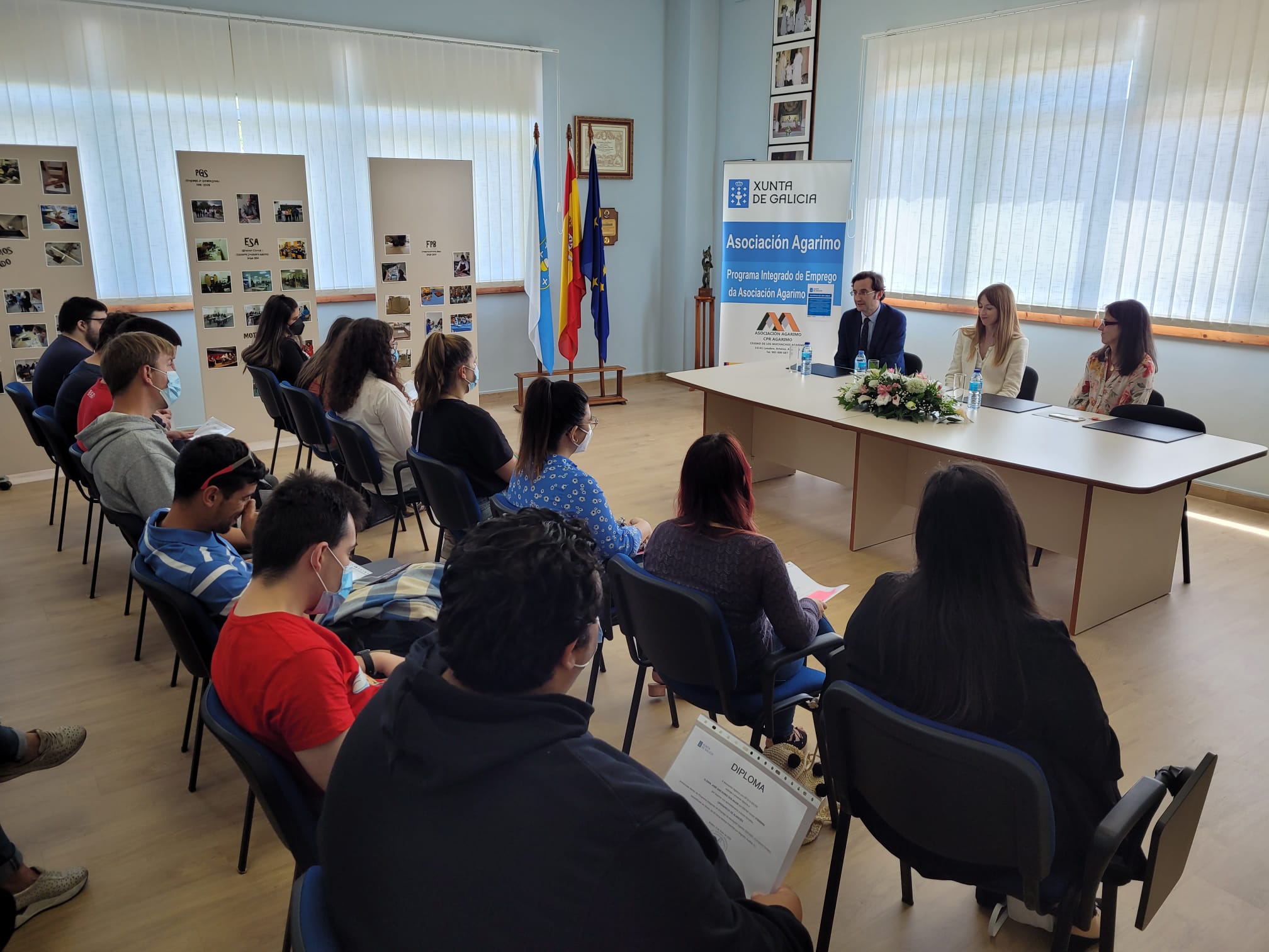 A directora xeral de Formación para o Emprego e Orientación, Zeltia Lado, salientou hoxe en Arteixo o alto grado de inserción laboral dos programas integrados de emprego que desenvolve, co apoio da Xunta, a asociación Agarimo. Hoxe mesmo tivo lugar a entrega de diplomas da última edición desta iniciativa á que a Consellería de Promoción do Emprego e Igualdade destinou máis de 255.000 euros para formar durante un ano a un cento de mozas e mozas pertencentes a colectivos vulnerables desde o punto de vista social, económico e cultural. Lado puxo en valor o traballo que neste senso realiza Agarimo con máis de 40 anos de experiencia atendendo a grupos de mozos que se encontran nunha situación de vulnerabilidade. De feito, vén de obter a certificación Aenor pola súa actividade de xestión e impartición de formación profesional para o emprego.