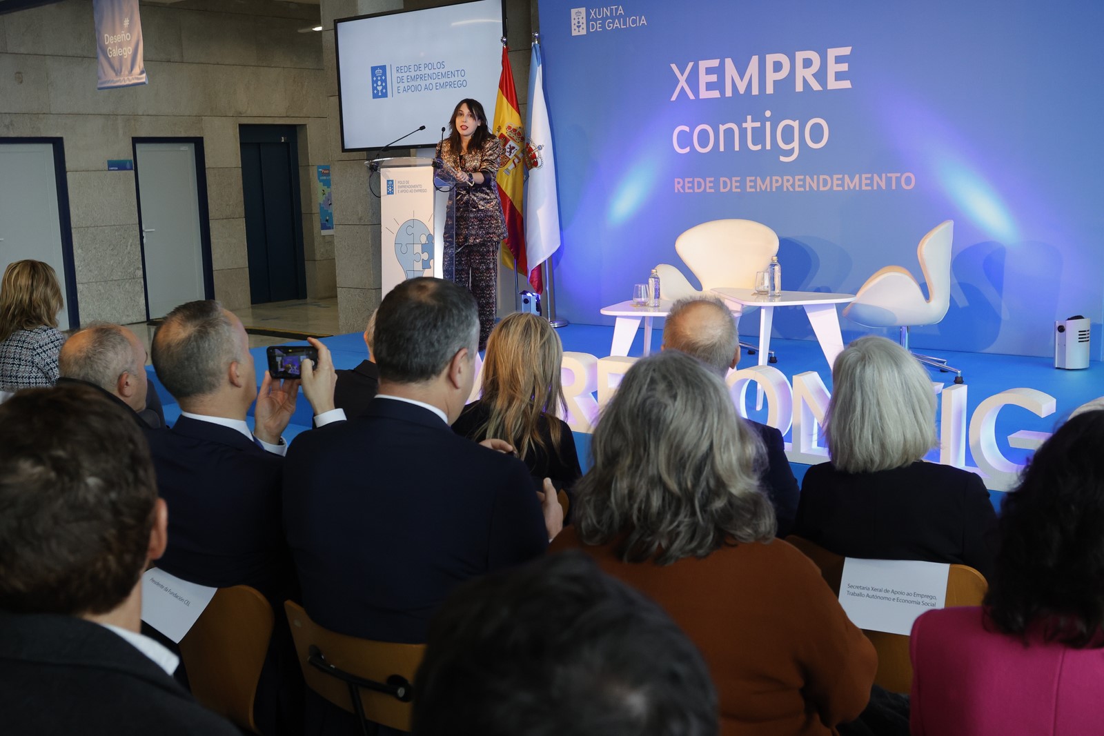 No acto, no que se presentaron tres ideas de negocio diferentes ligadas todas elas a súa contorna (Raíces de agua, Suidade Deseño Galego e Great memories events), Lorenzana sinalou que a Rede de polos de emprendemento e apoio ao emprego, promovida polo departamento autonómico que dirixe, ofrece xa un acompañamento continuado ás persoas galegas emprendedoras, “converténdose nunha rede de seguridade para impulsar unha forma de emprender ordenada”, indicou.
