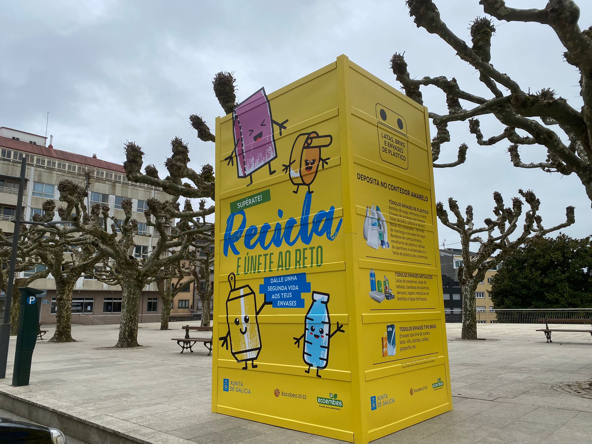 La campaña de la Xunta 'Únete al reto' anima a reciclar envases ligeros con la instalación de un contenedor gigante en Ordes, Santa Comba y A Laracha