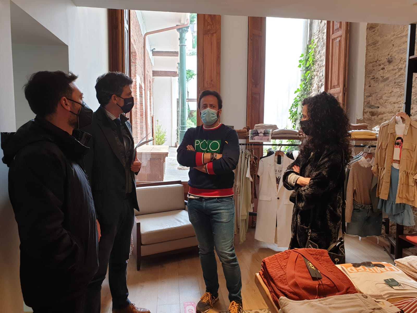 El delegado territorial visita el establecimiento Miler Vintage Running Club para ofrecer los detalles del ‘Bono Activa Comercio' junto al presidente de Aempe, José María Corujo, y el del CCU Zona Monumental, Miguel Ángel Lago