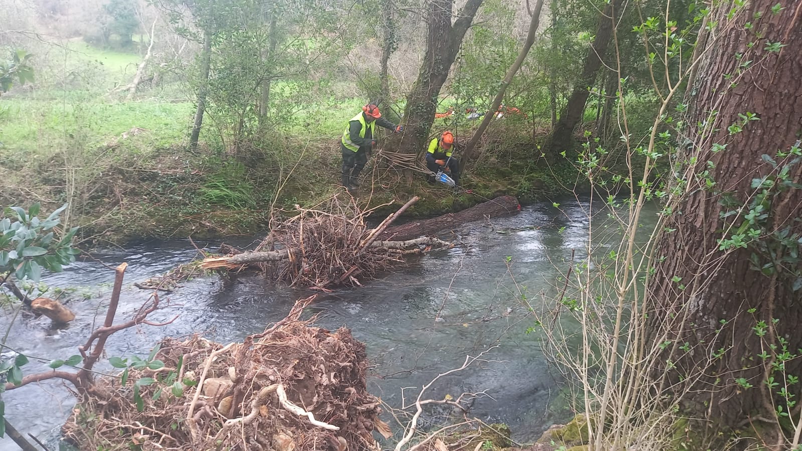As tarefas céntranse na roza puntual e selectiva e na retirada de árbores e pólas caídas para evitar atoamentos