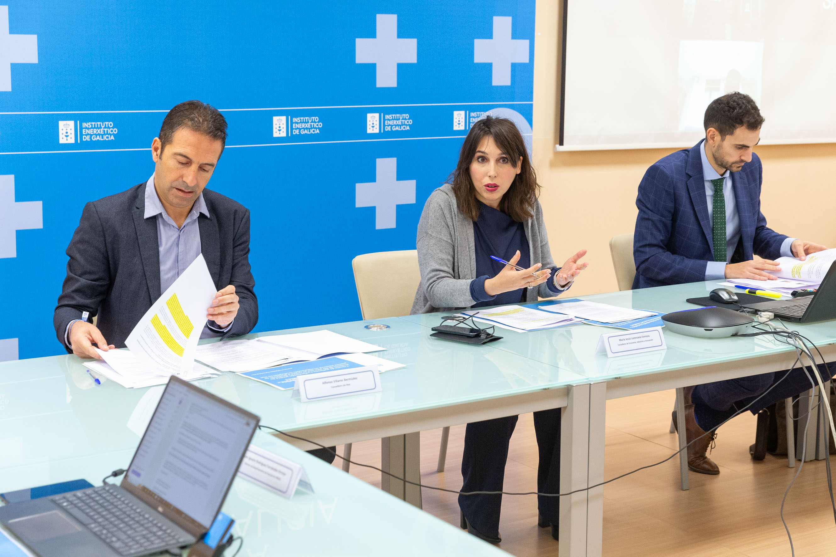 La conselleira de Economía, Industria e Innovación en funciones, María Jesús Lorenzana, y el conselleiro del Mar en funciones, Alfonso Villares, participaron hoy en la reunión del Observatorio de la Eólica Mariña