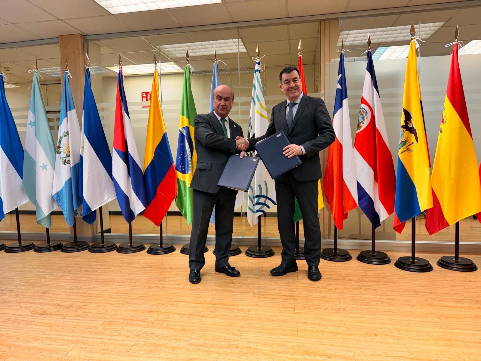 El conselleiro de Cultura, Educación, FP e Universidades en funciones, Román Rodríguez, y el secretario general de la Organización de Estados Iberoamericanos (OEI), Mariano Jabonero, firmaron esta mañana en Madrid un acuerdo de colaboración para planificar acciones conjuntas en la promoción de programas de innovación educativa.