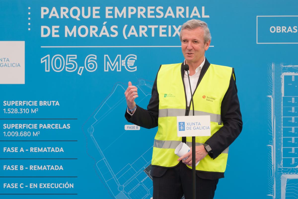 Así o destacou Rueda nunha visita na que estivo acompañado pola vicepresidenta segunda e conselleira de Medio Ambiente, Territorio e Vivenda en funcións, Ángeles Vázquez, ás obras de urbanización da fase C do parque empresarial de Morás, en Arteixo. En concreto, esta terceira fase está pensada para ofrecer parcelas máis pequenas, de maneira que non só as empresas con maior capacidade poidan gozar de todas as vantaxes que ofrece este espazo.