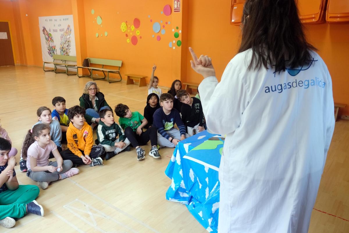 La directora de Augas de Galicia, Teresa Gutiérrez, se acercó esta mañana al centro escolar coincidiendo con la conmemoración, hoy, del Día Mundial del agua, que este año se celebra bajo el lema "Agua para la paz".