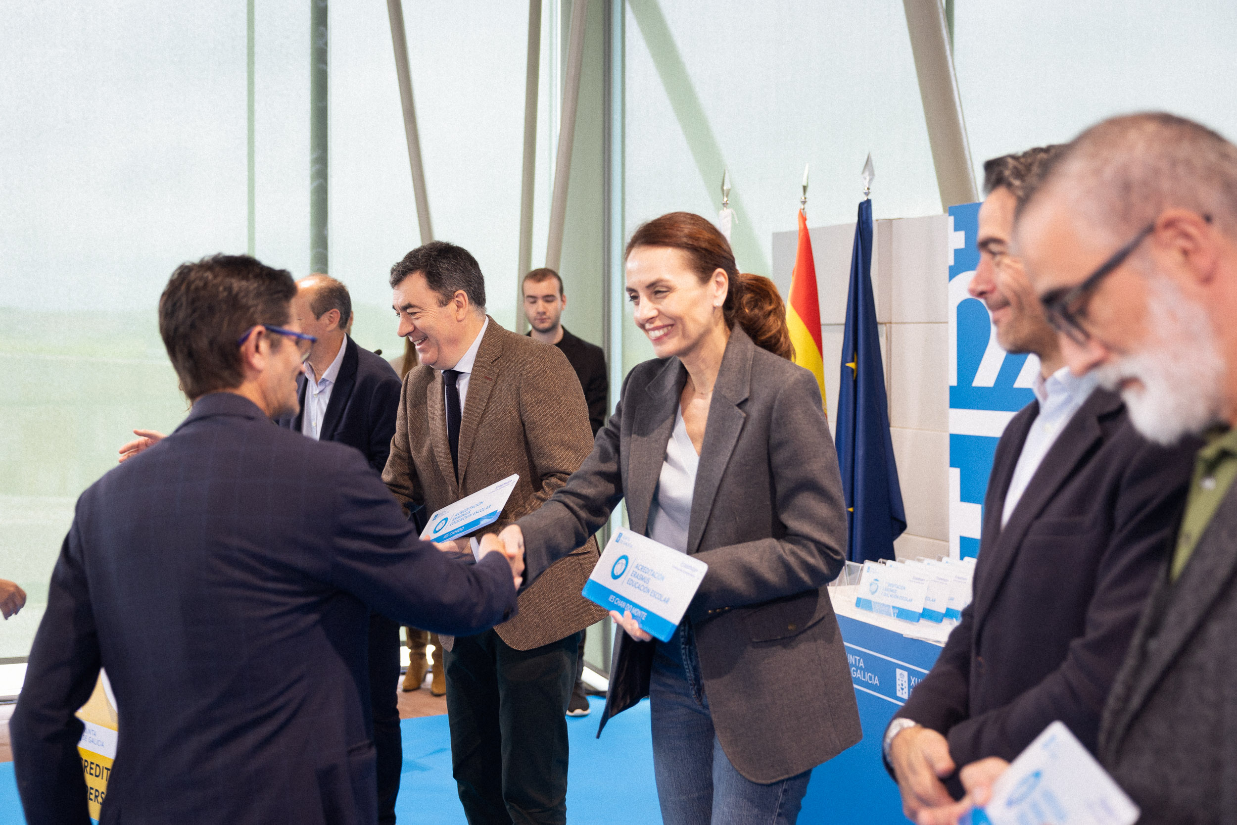 El conselleiro de Educación, Ciencia, Universidades e Formación Profesional, Román Rodríguez, les concedió esta mañana el reconocimiento por parte del Gobierno autonómico por su contribución a la excelencia del sistema educativo gallego a través del proyecto de movilidad internacional de los países miembros de la Unión Europea.