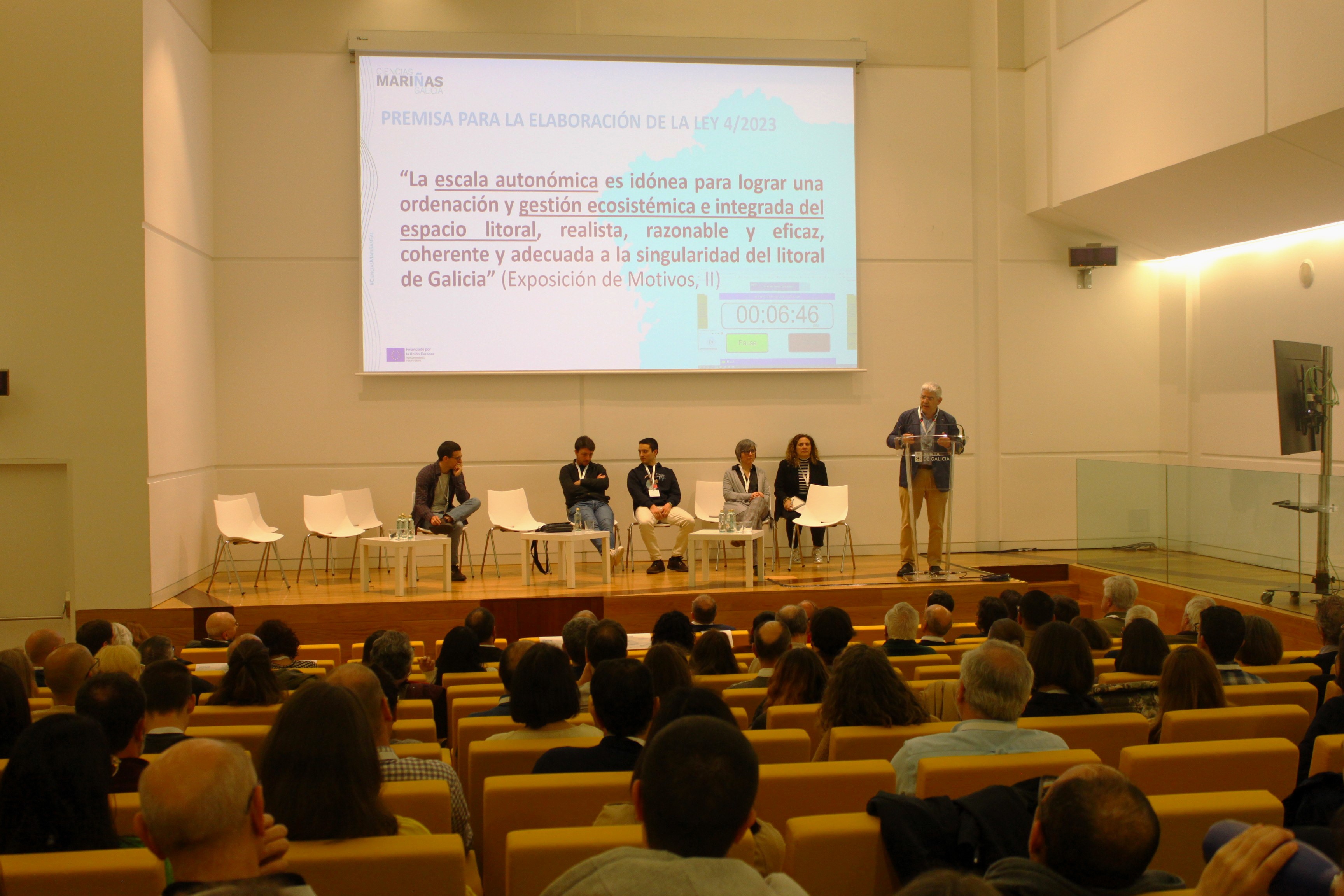 Esta cuarta asamblea del Programa de Ciencias Mariñas de Galicia estuvo estructurada en tres bloques temáticos y cinco paneles en los que se enmarcaron los 36 relatorios, que corrieron a cargo del personal y juventud investigadora de Meteogalicia, IEO-CSIC de A Coruña y Vigo, IIM-CSIC, Intecmar, Cetmar, Cesga y de las universidades de Santiago, Vigo y A Coruña.