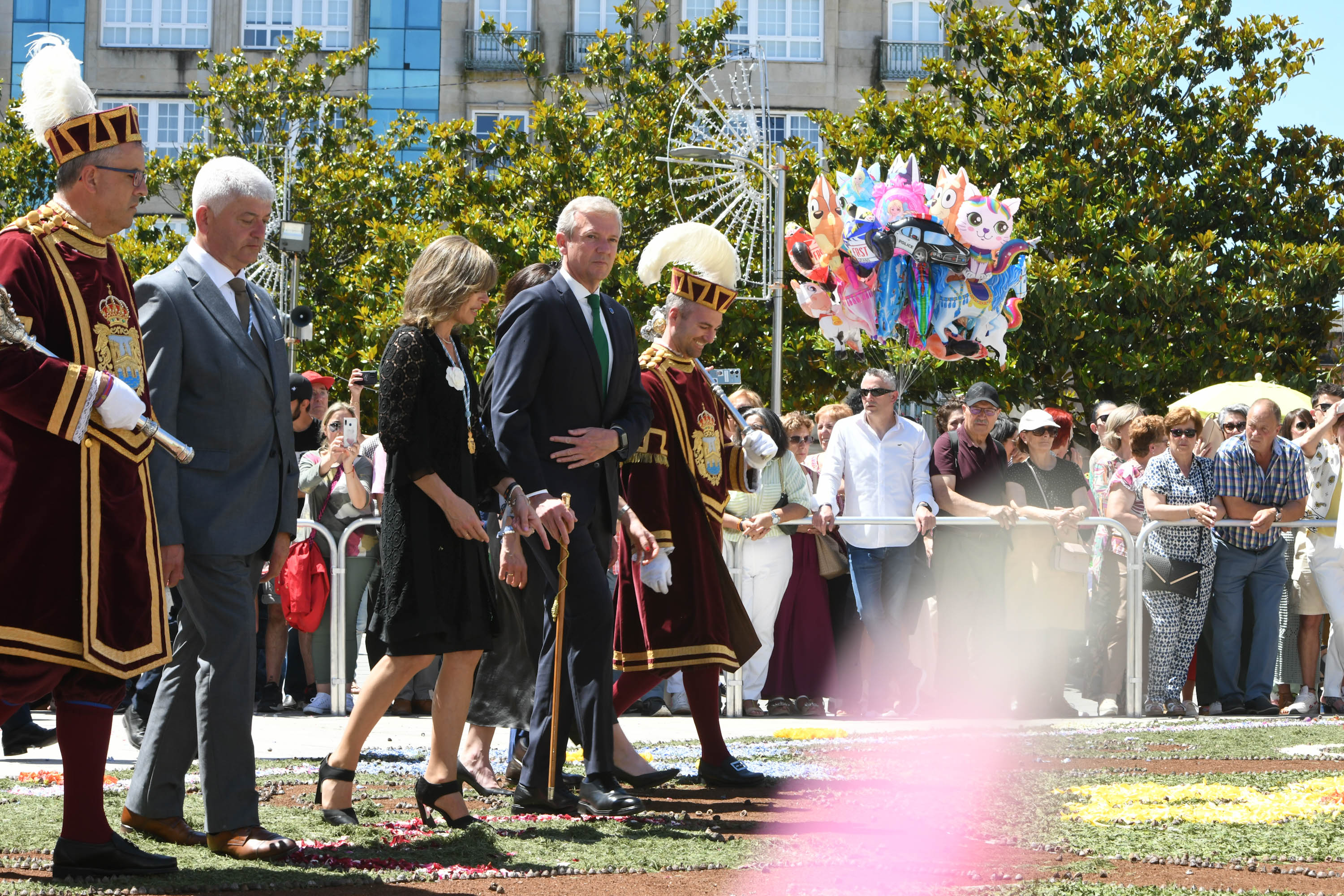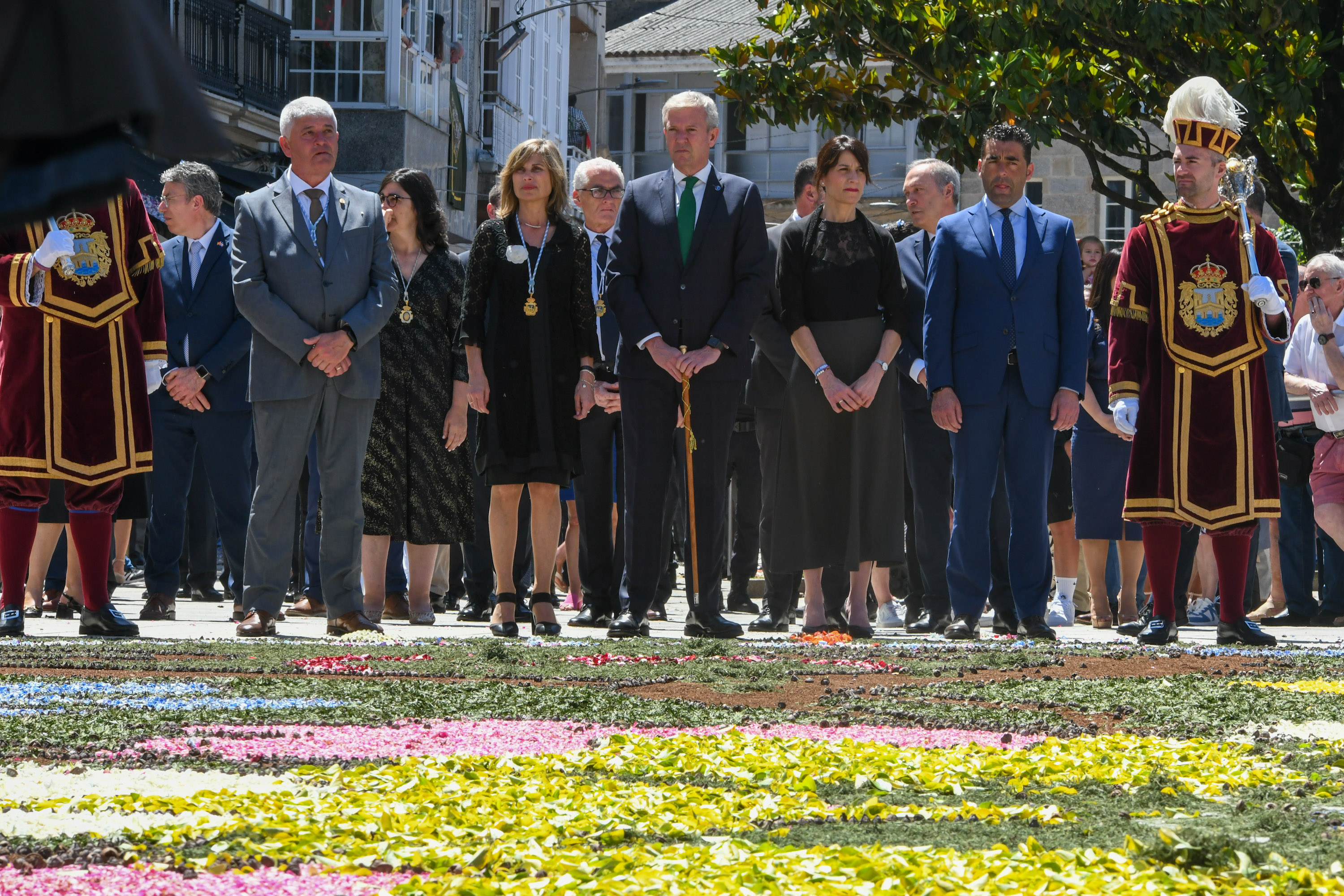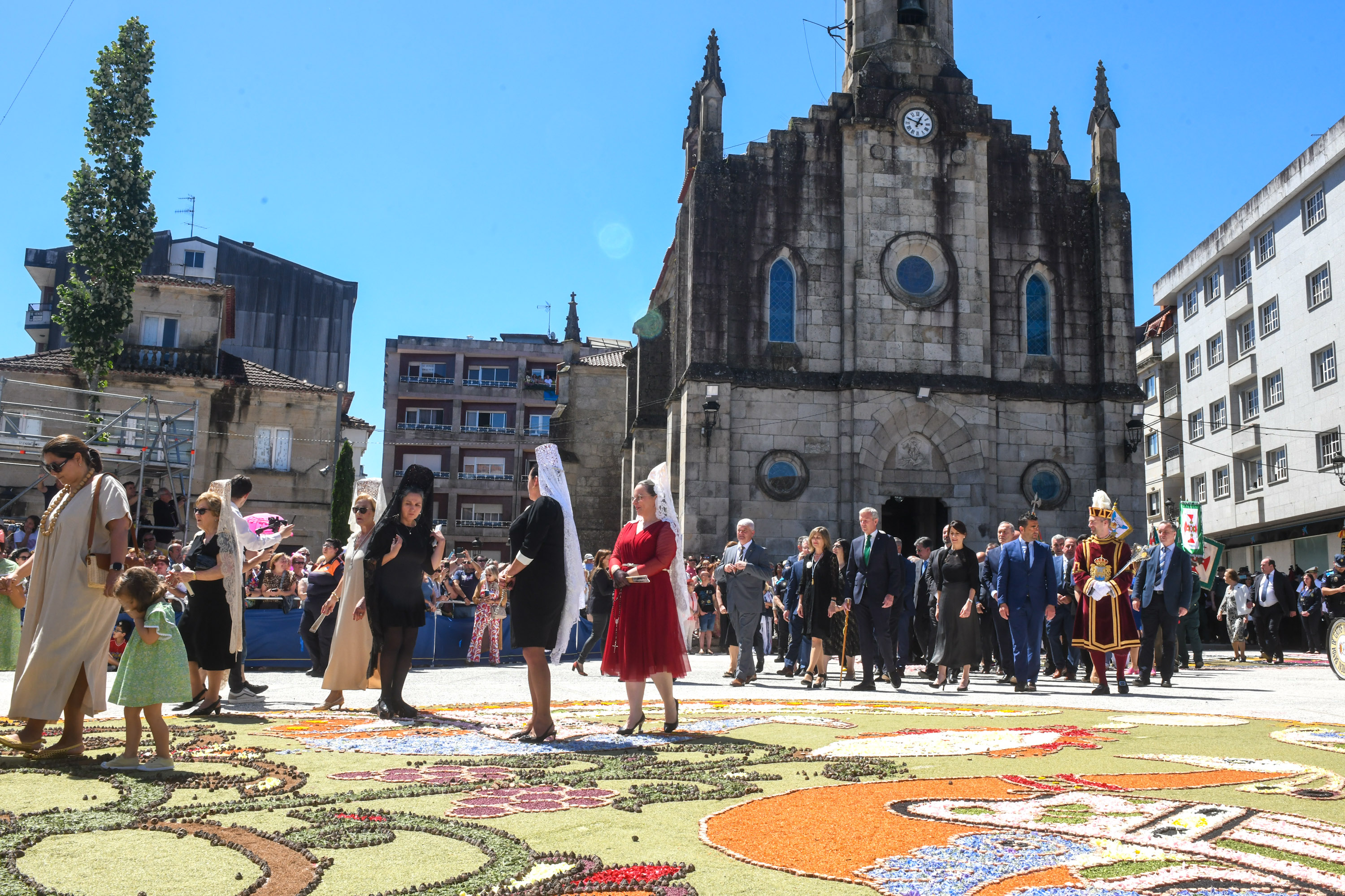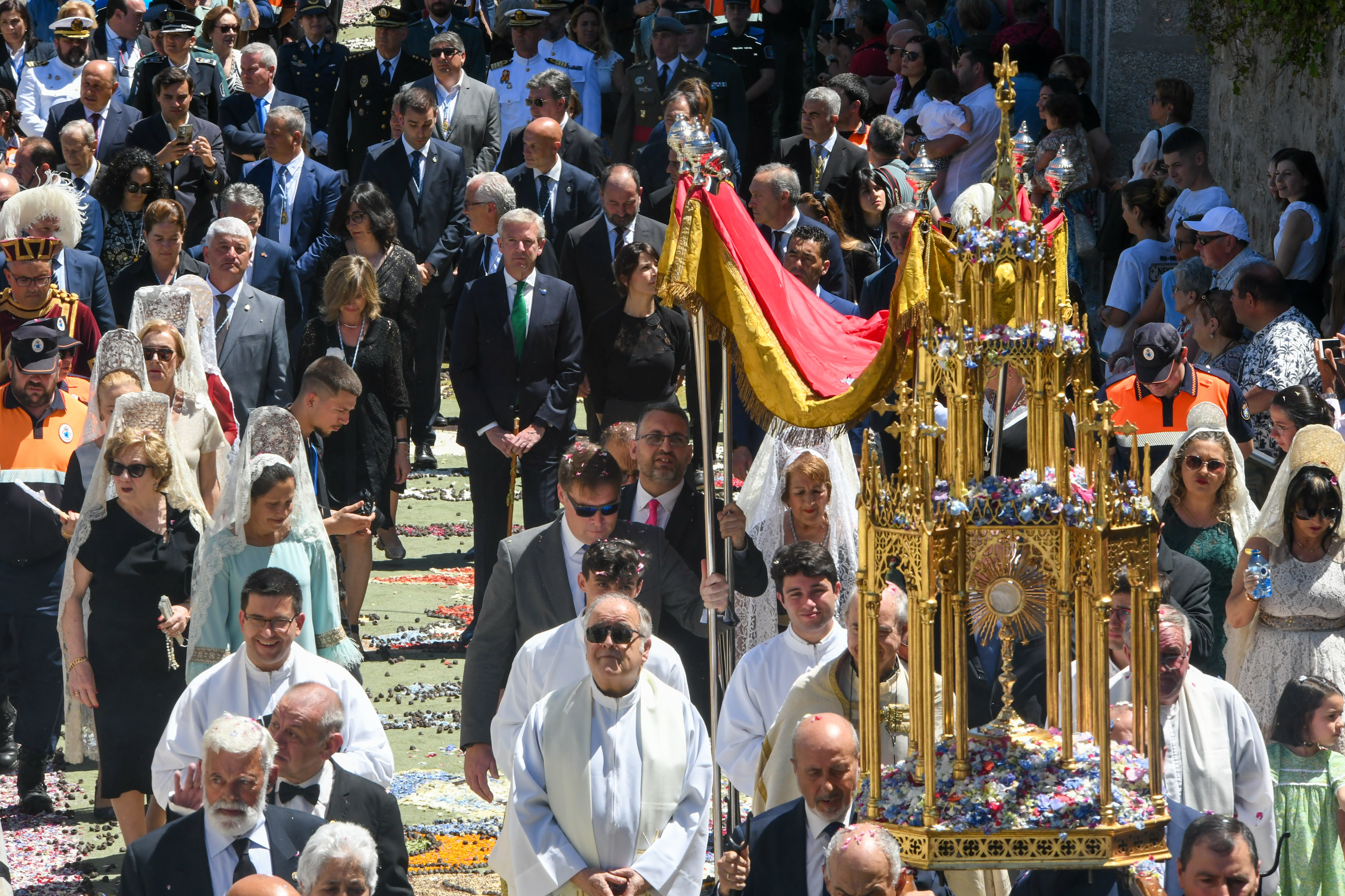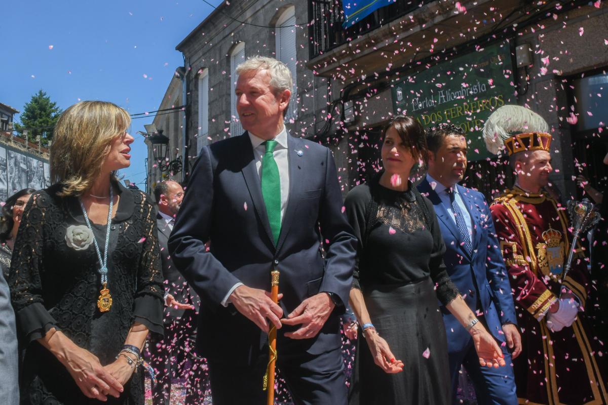 El presidente de la Xunta de Galicia, Alfonso Rueda, acompañado de la conselleira de Vivienda, Planificación y Infraestructuras, María Martínez Allegue, del director de Turismo de Galicia, Xosé Merelles, y del delegado territorial de la Xunta en Pontevedra, Agustín Reguera, participó en la procesión del Corpus Christi de Ponteareas, declarada Fiesta de Interés Turístico Internacional.