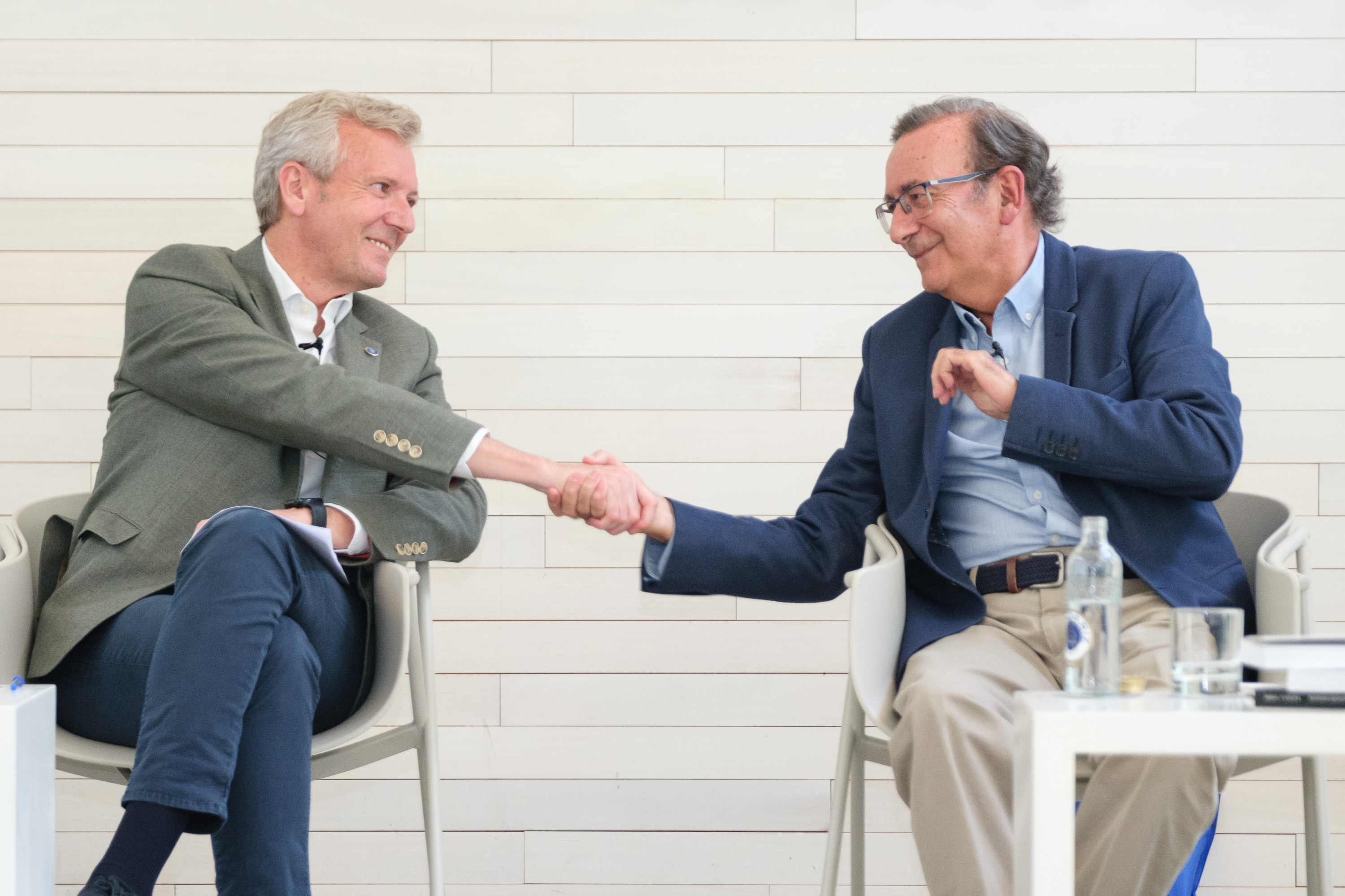 O presidente da Xunta, Alfonso Rueda, participou esta tarde na presentación do libro Pontevedra, haciendo memoria, que reúne diferentes artigos do xornalista Rafael López Torre sobre a historia desta cidade.